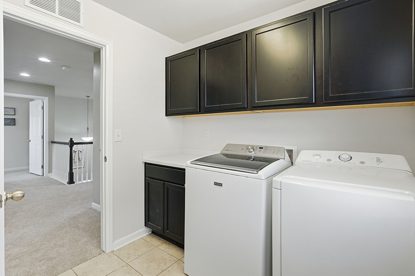 Baseboards Wall, Carpet, Drywall, Laundry, Natural Light, Recessed Lighting, Tile Floor, Vent, Tile Floor, Washer Hookup