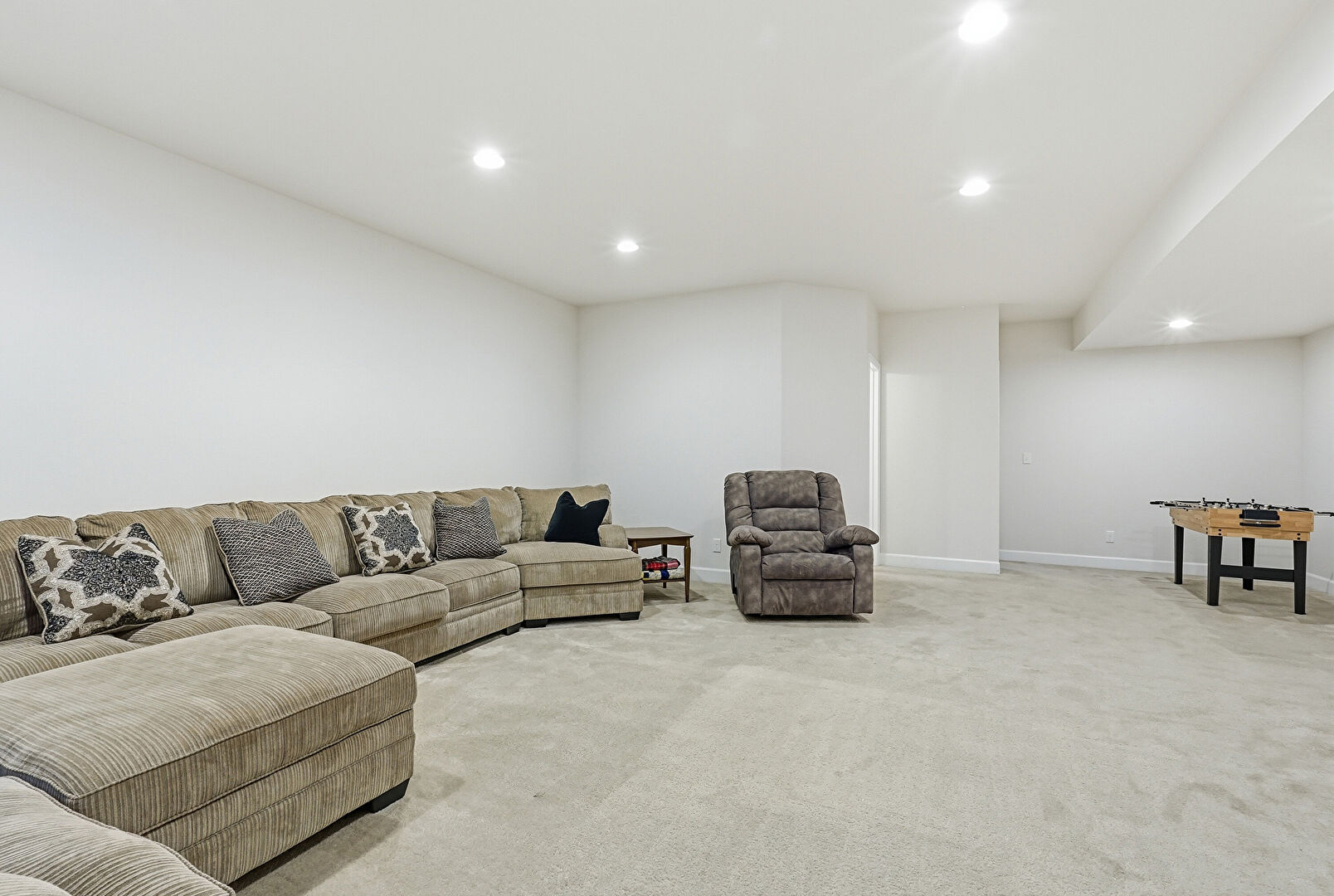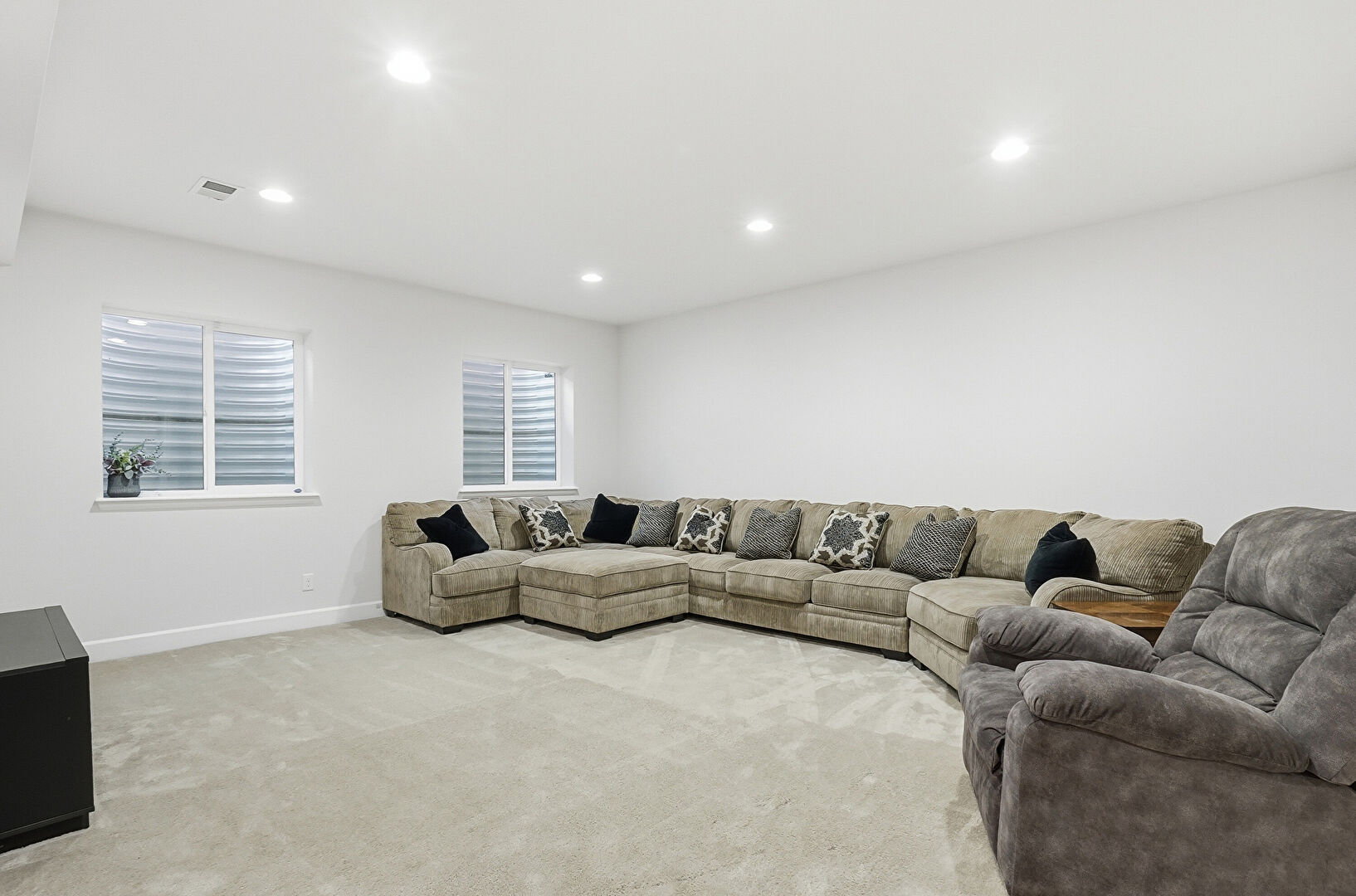 Baseboards Wall, Basement, Carpet, Drywall, Natural Light, Recessed Lighting, Vent, Baseboards Wall, Carpet, Recessed Lighting