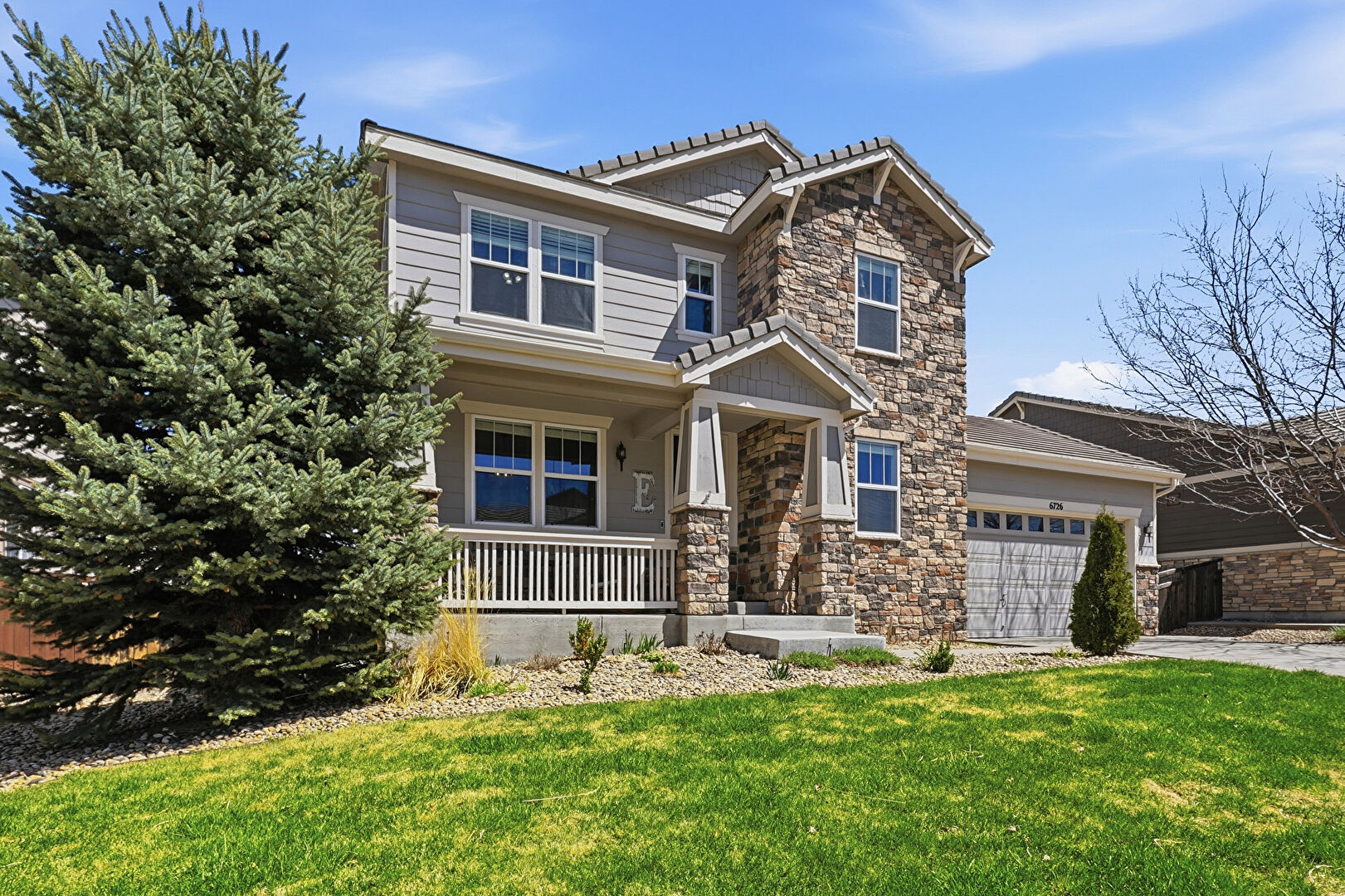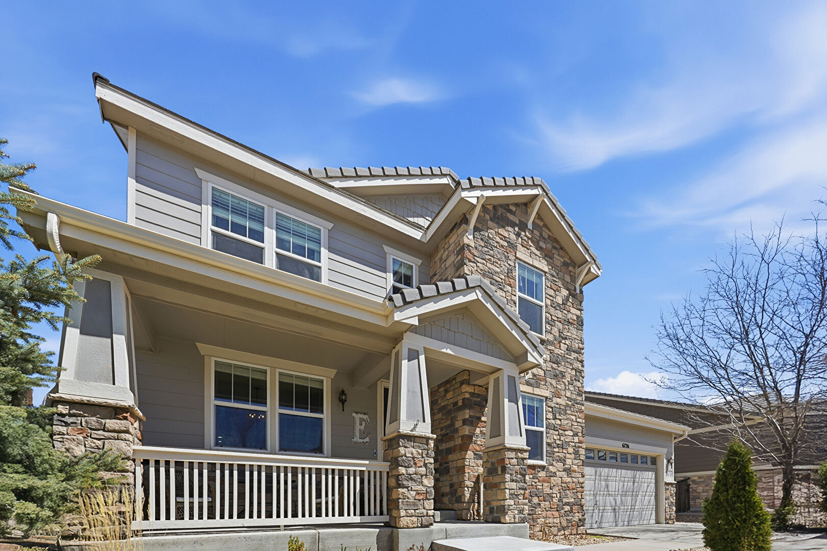 Downspout, Driveway, Gutters, Horizontal Siding, Lawn, Porch, Shake Shingle Siding, Stone Siding, Tile Roof, Driveway, Horizontal Siding, Porch