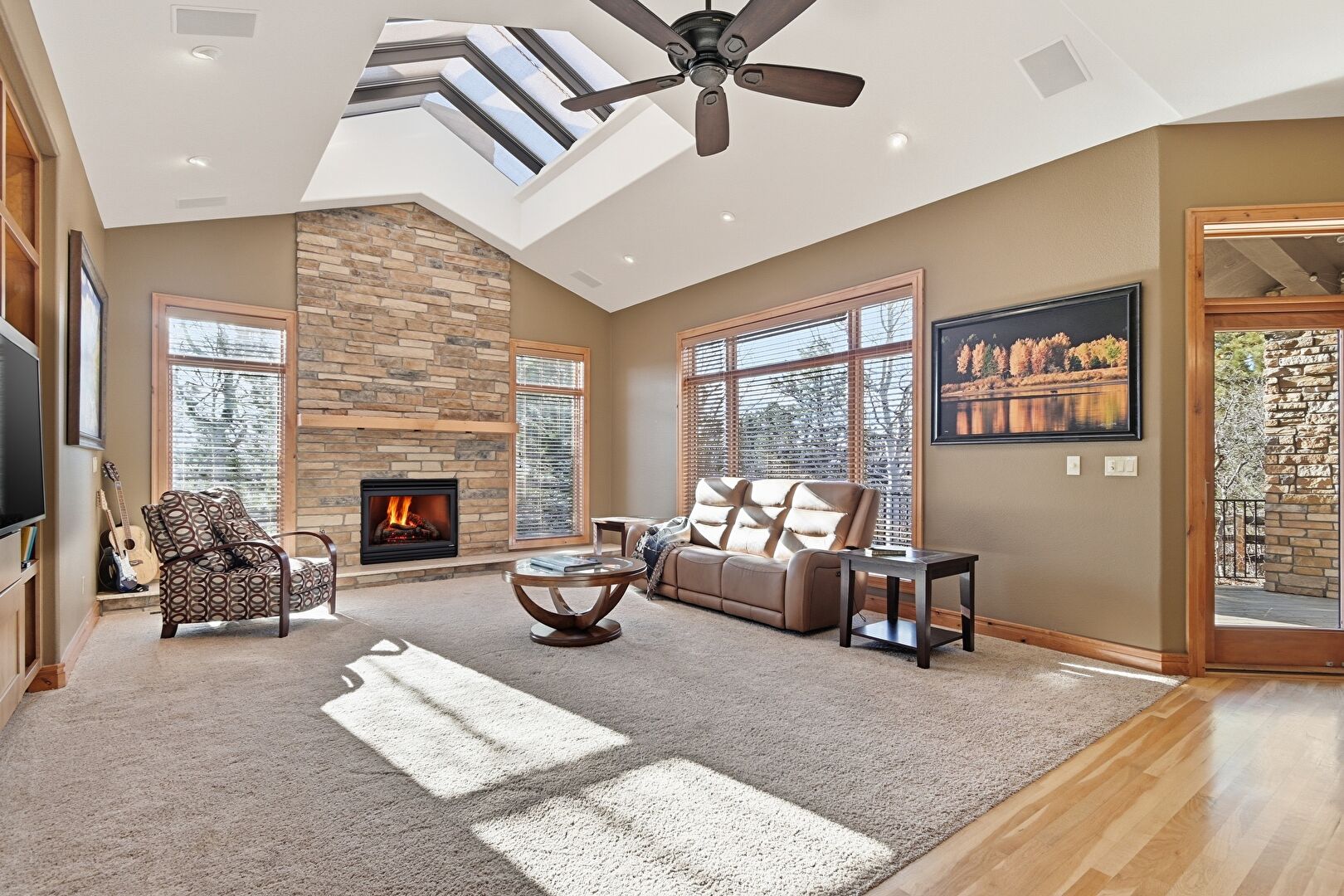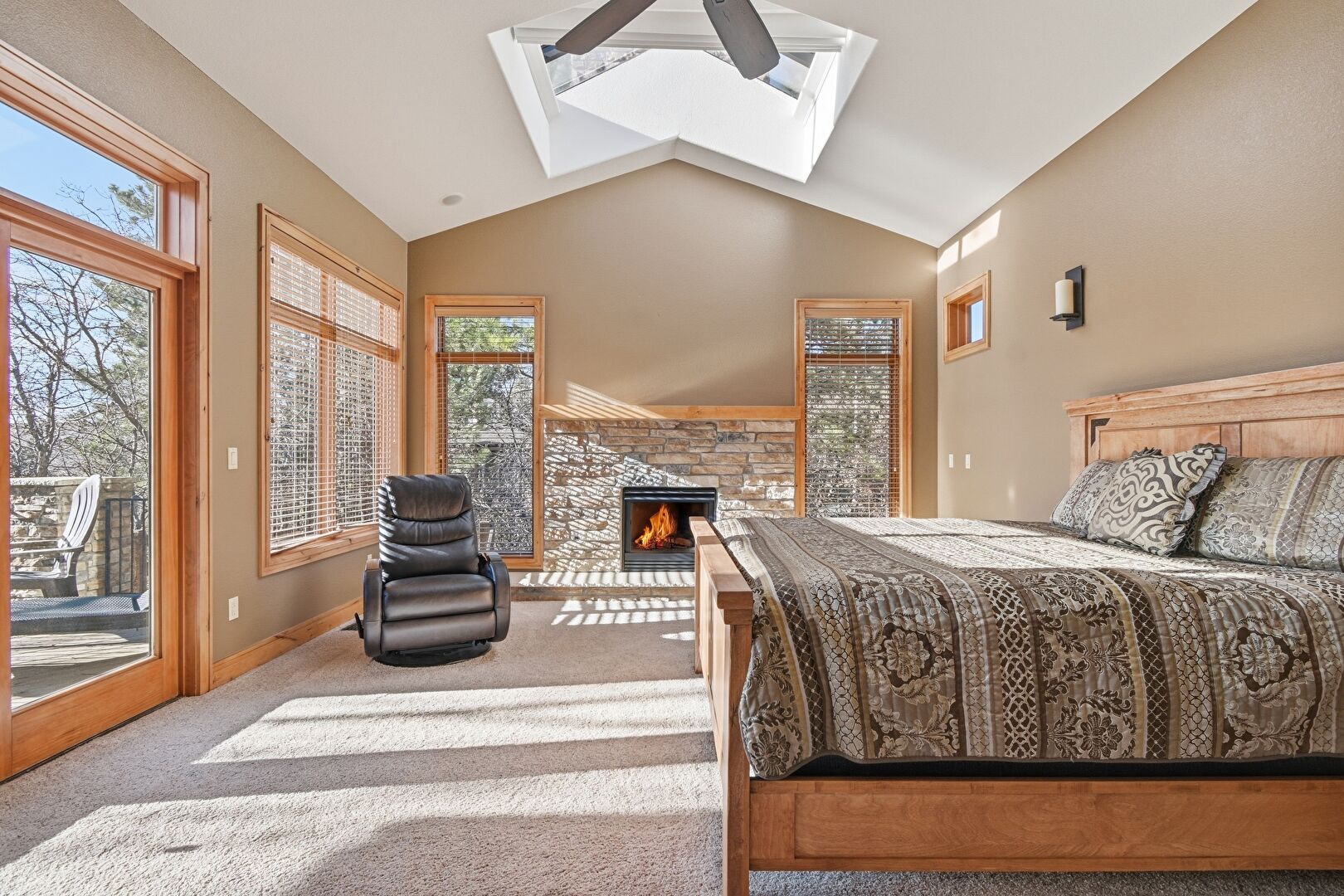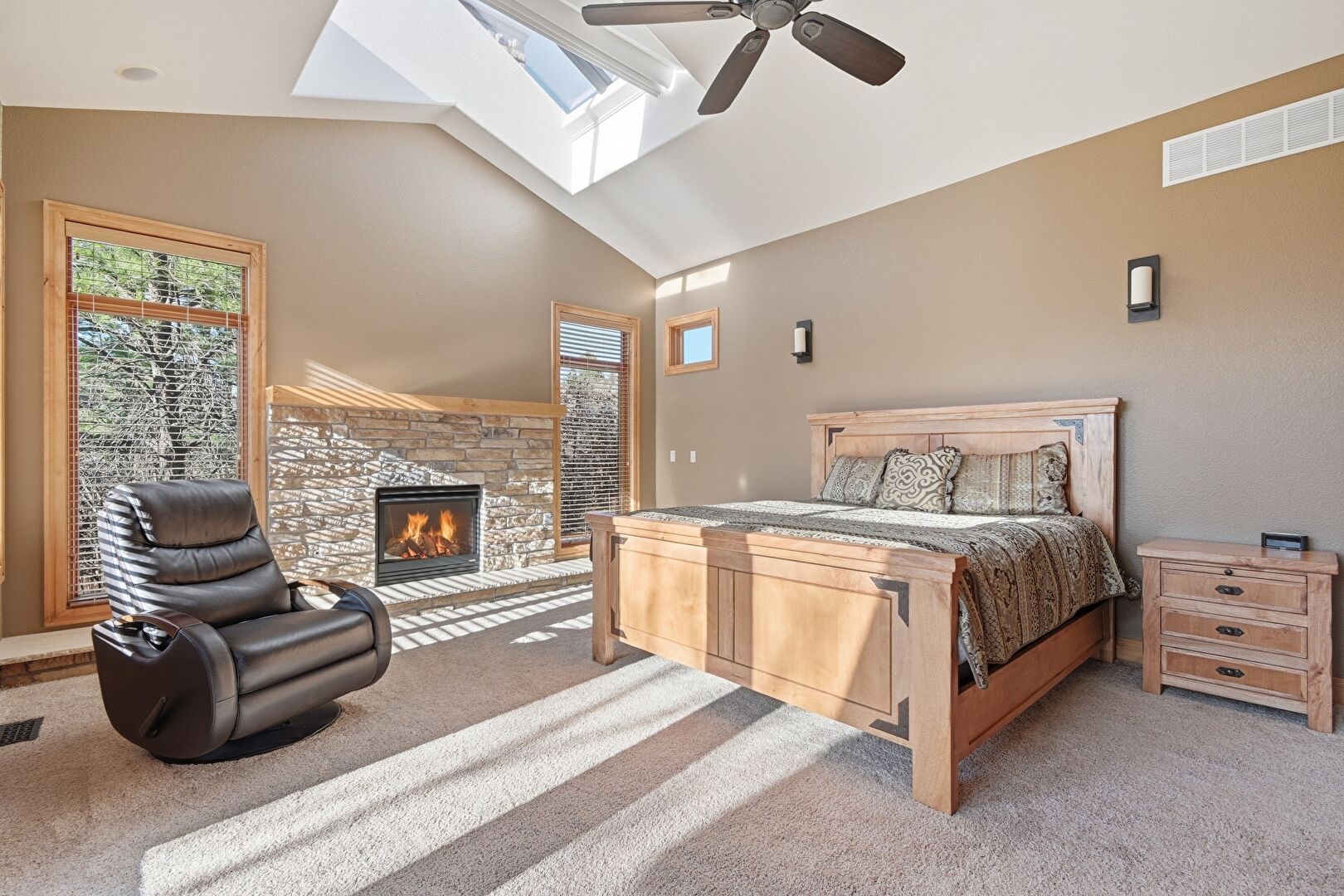 Access To Exterior, Baseboards Wall, Carpet, Cathedral Ceiling, Ceiling Fan, Drywall, Ensuite Bathroom, Fireplace, High Ceiling, Natural Light, Notable Chandelier, Office Area, Skylight, Two Closets, Vaulted Ceiling, Vent, Walk In Closet, Access To Exterior, Carpet, Ceiling Fan, Drywall, Natural Light