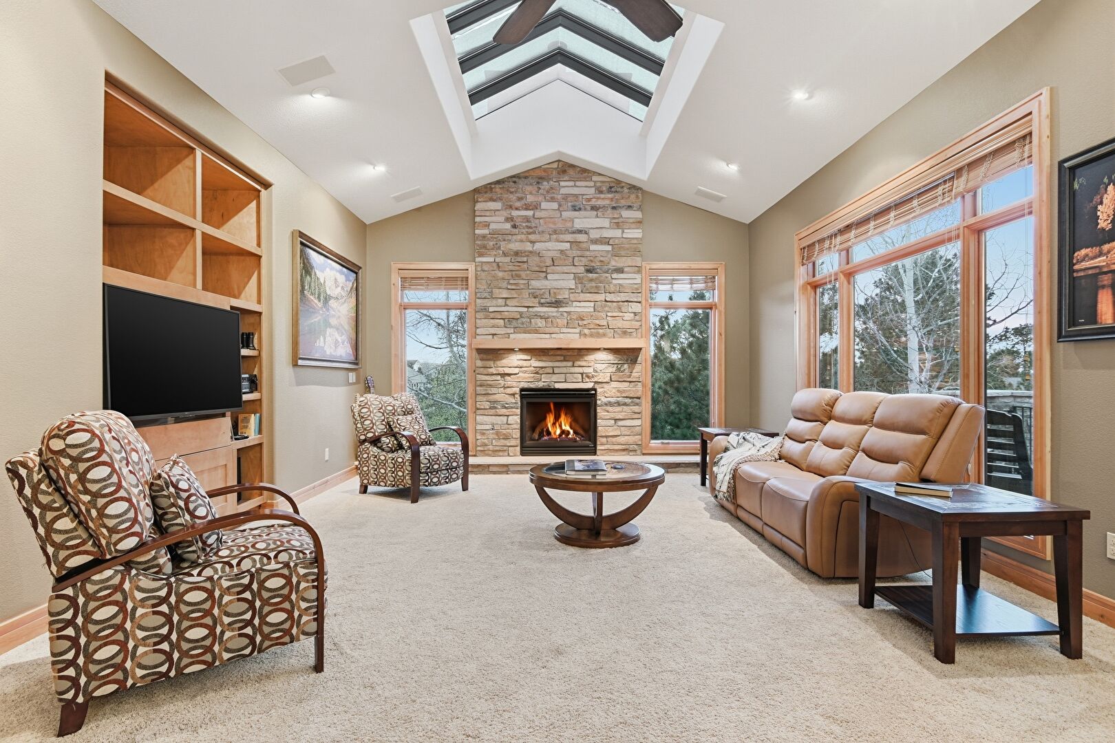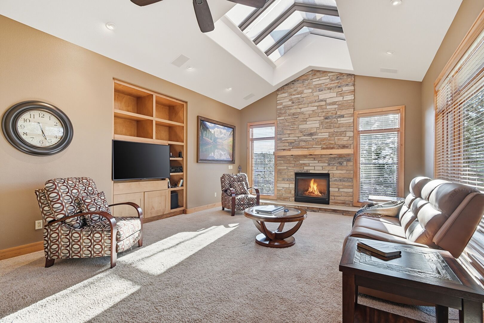 Baseboards Wall, Beamed Ceiling, Built In Shelves, Carpet, Cathedral Ceiling, Ceiling Fan, Double Oven, Drywall, Fireplace, High Ceiling, Natural Light, Notable Chandelier, Recessed Lighting, Skylight, Stairs, Vaulted Ceiling, Vent, Wood Finish Floor, Baseboards Wall, Ceiling Fan, Natural Light, Recessed Lighting, Vent, Wood Finish Floor