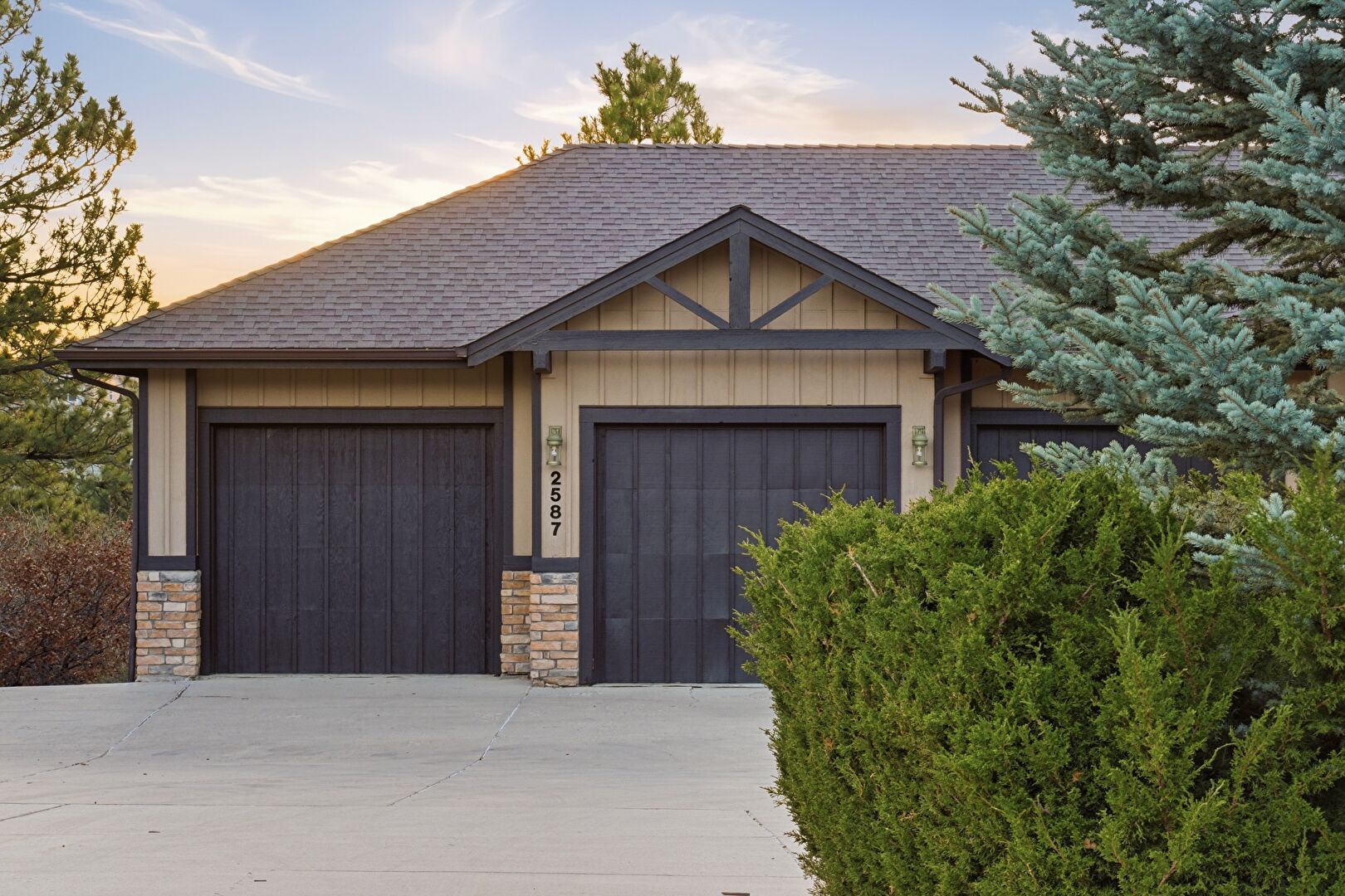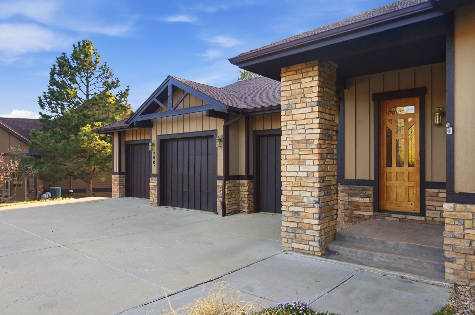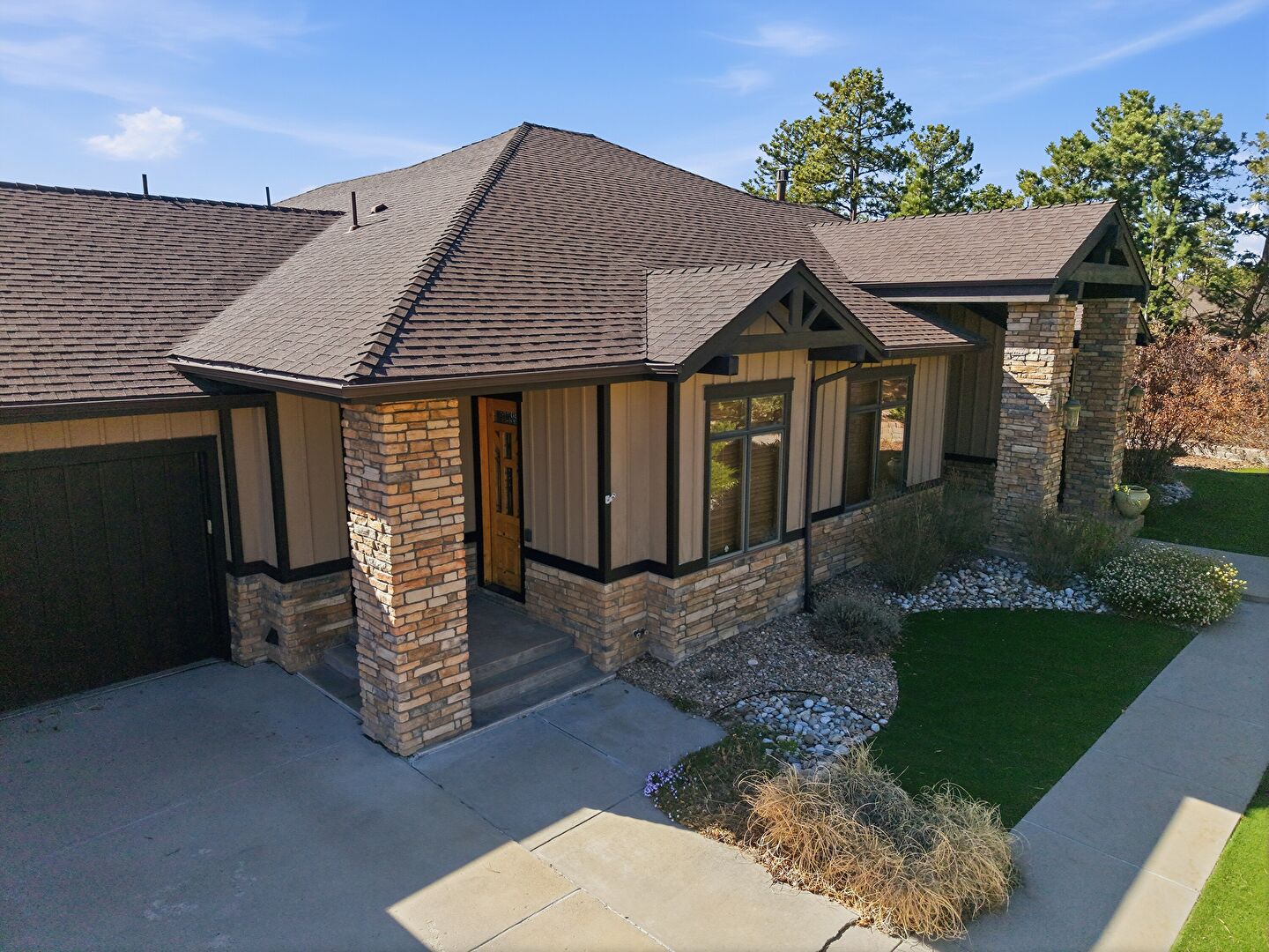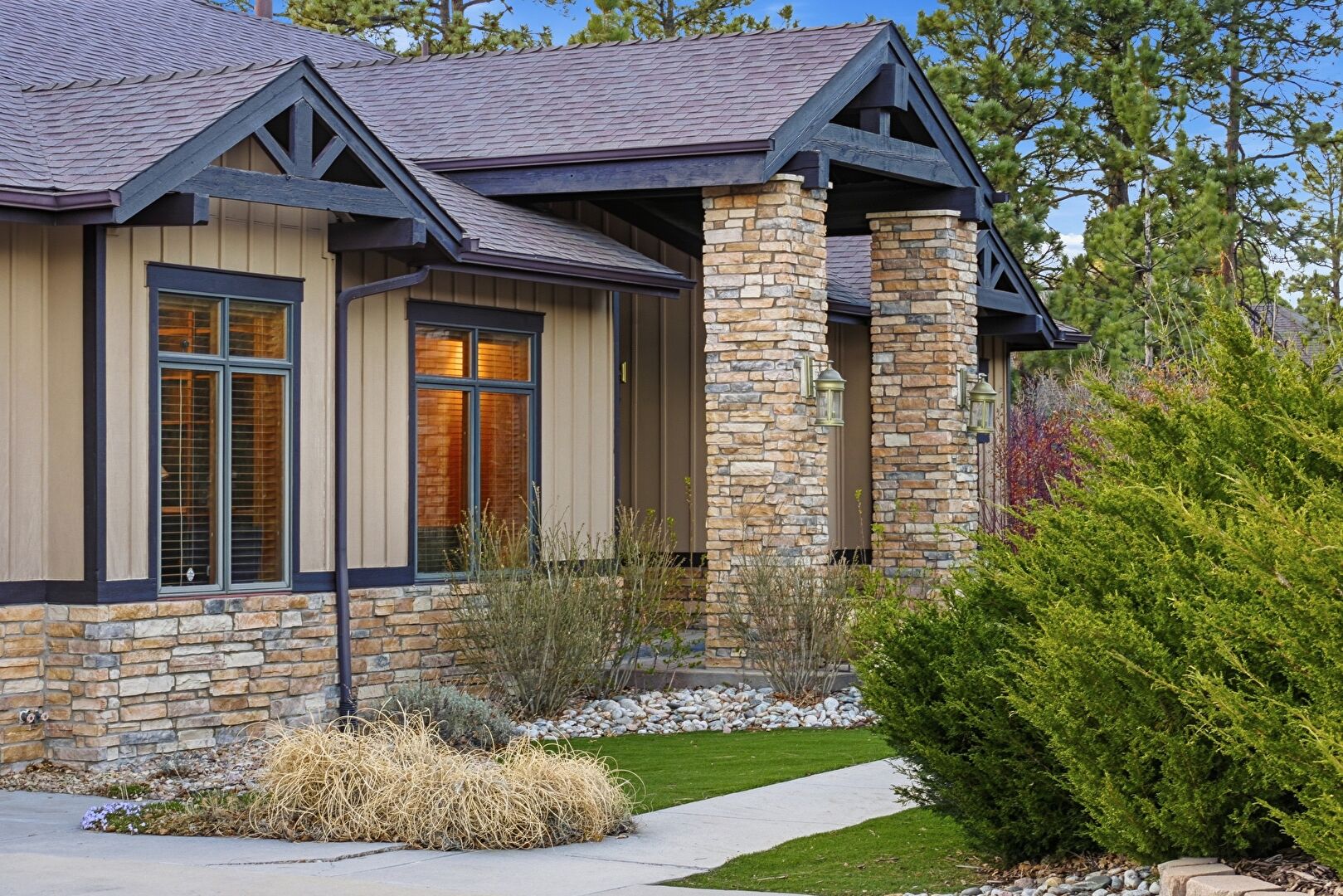 Board Batten Siding, Central Ac, Chimney, Downspout, Driveway, Gutters, Lawn, Mountain View, Porch, Shingle Roof, Stone Siding, Stoop, Vertical Siding, Woods View, Board Batten Siding, Downspout, Driveway, Gutters, Porch, Stone Siding, Vertical Siding