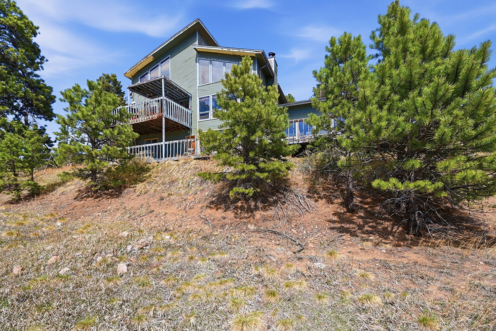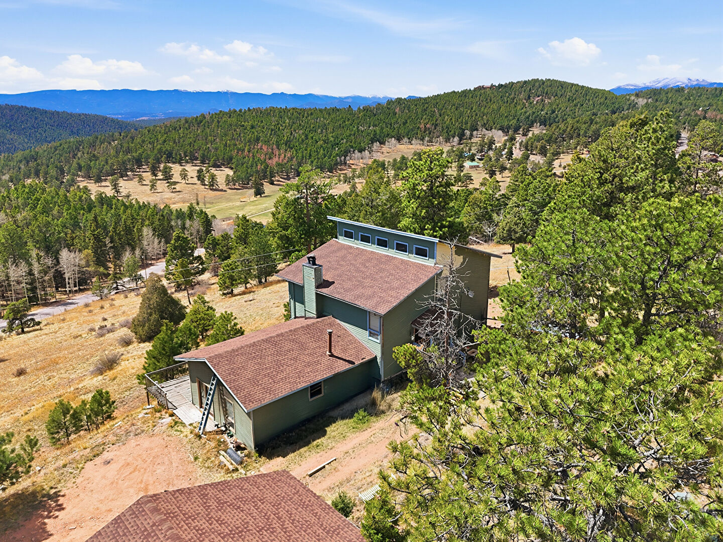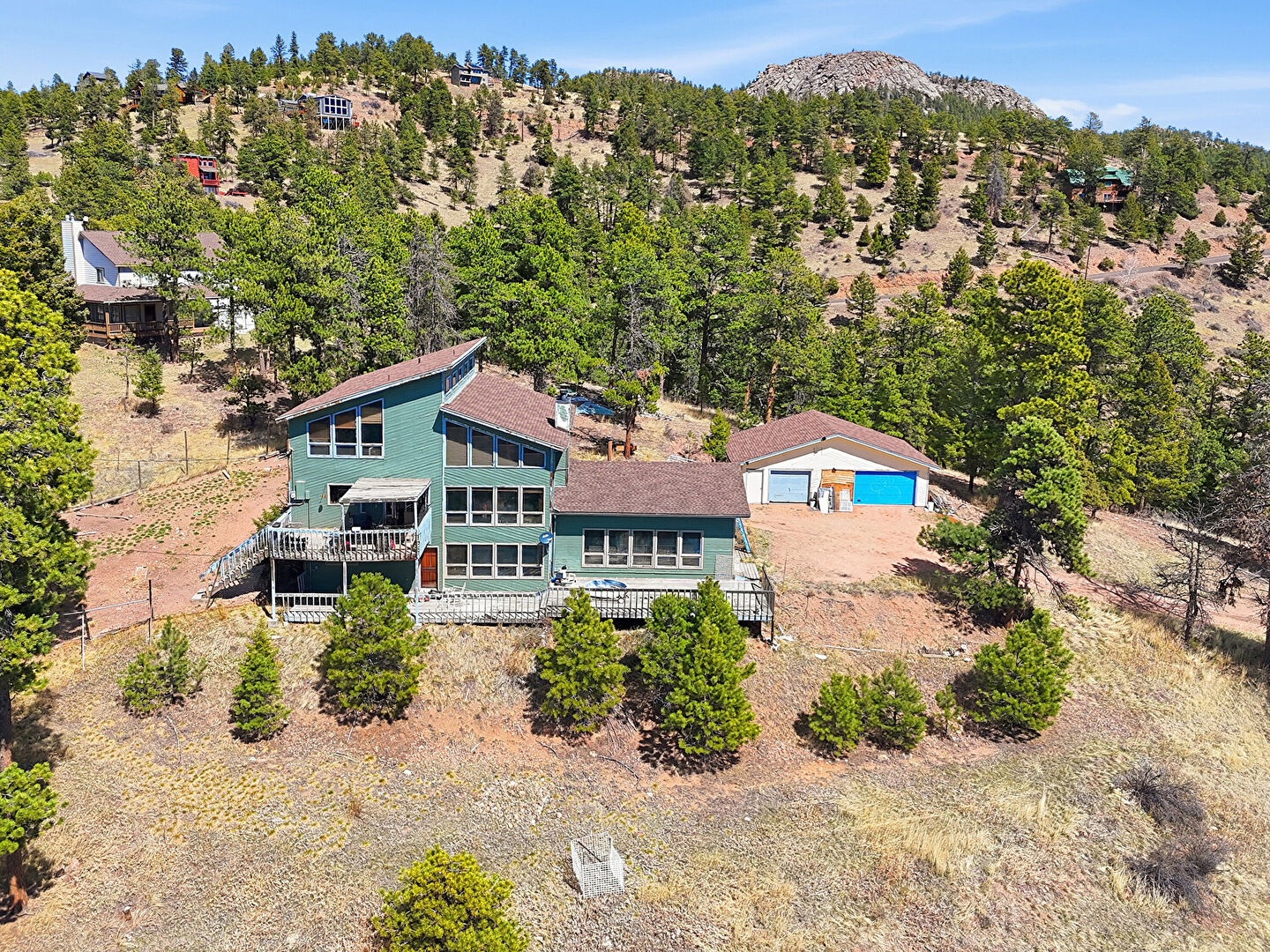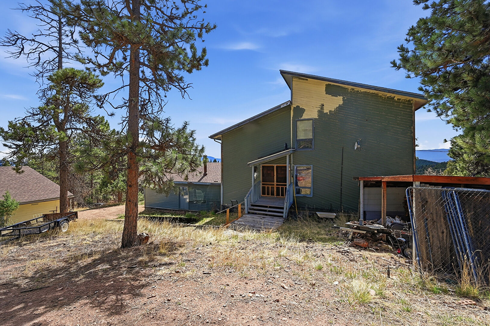 Chimney, Deck, Fence, Forest View, Garage, Horizontal Siding, Mountain View, Outdoor Structure, Rural View, Stairs, Sunroom, Woods View, Forest View, Glass Siding, Horizontal Siding, Mountain View, Water View, Woods View