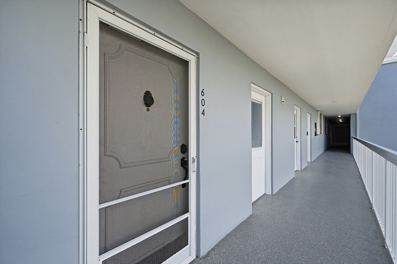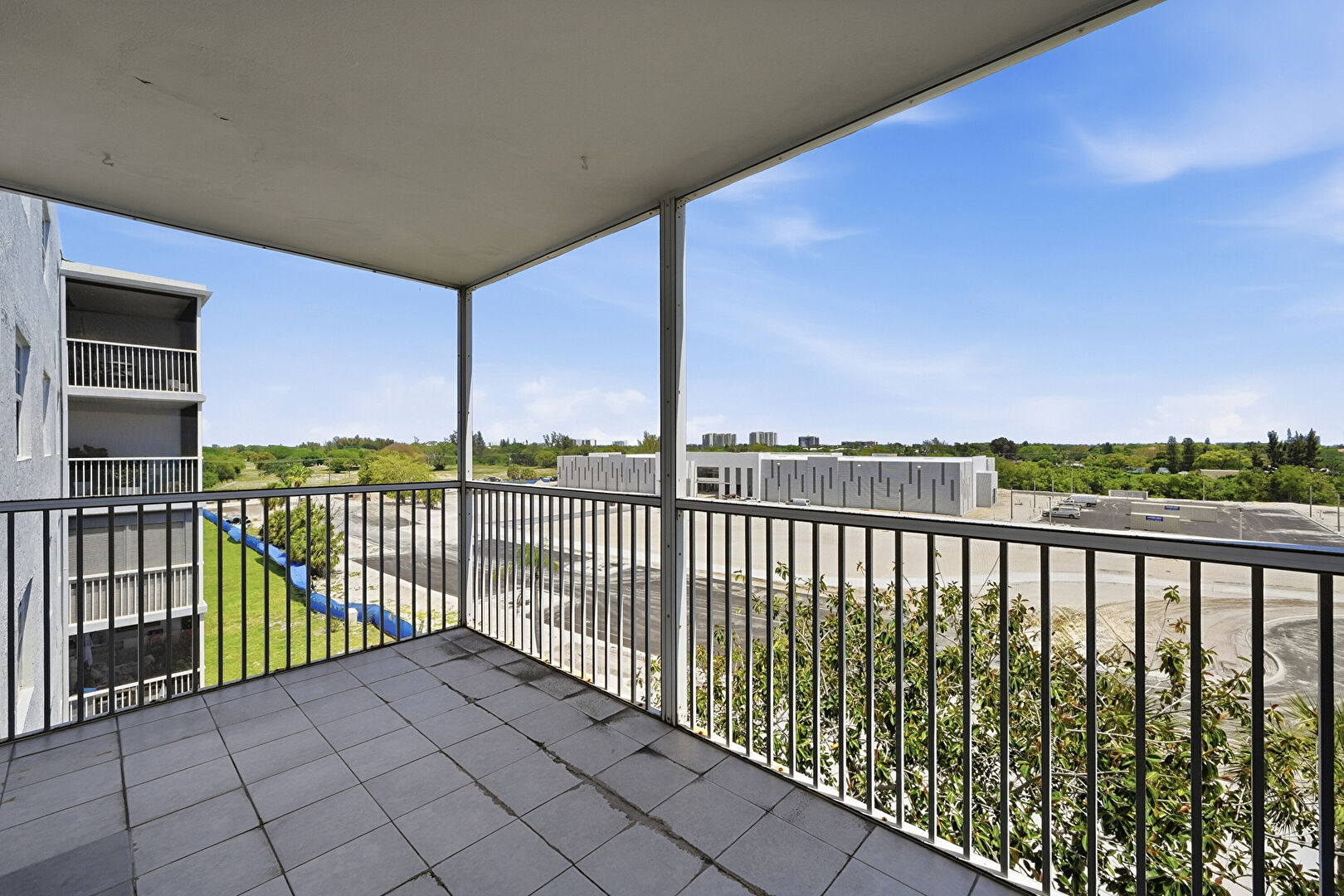 Apartment Complex View, Handrail, Patio, Pool, Fence