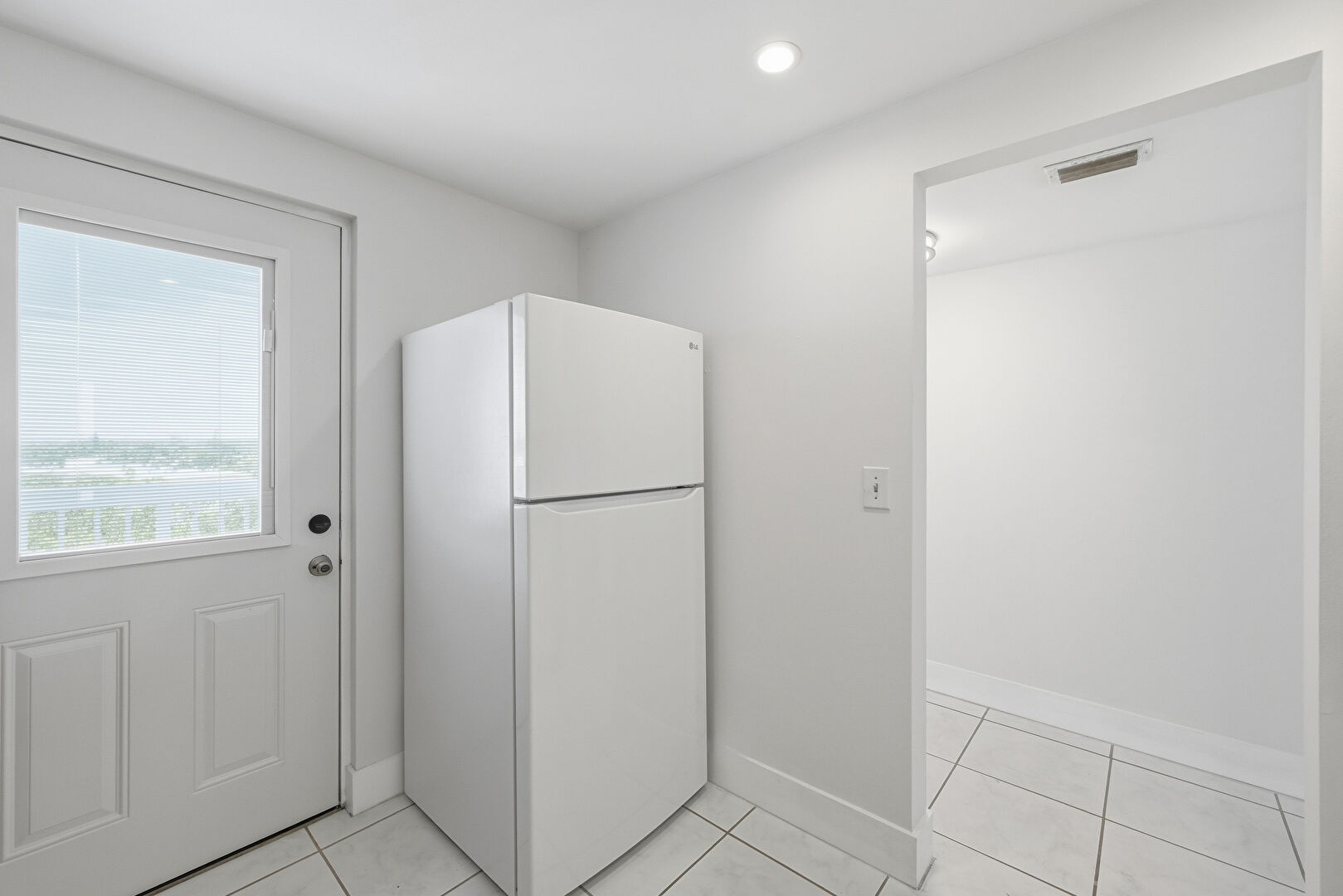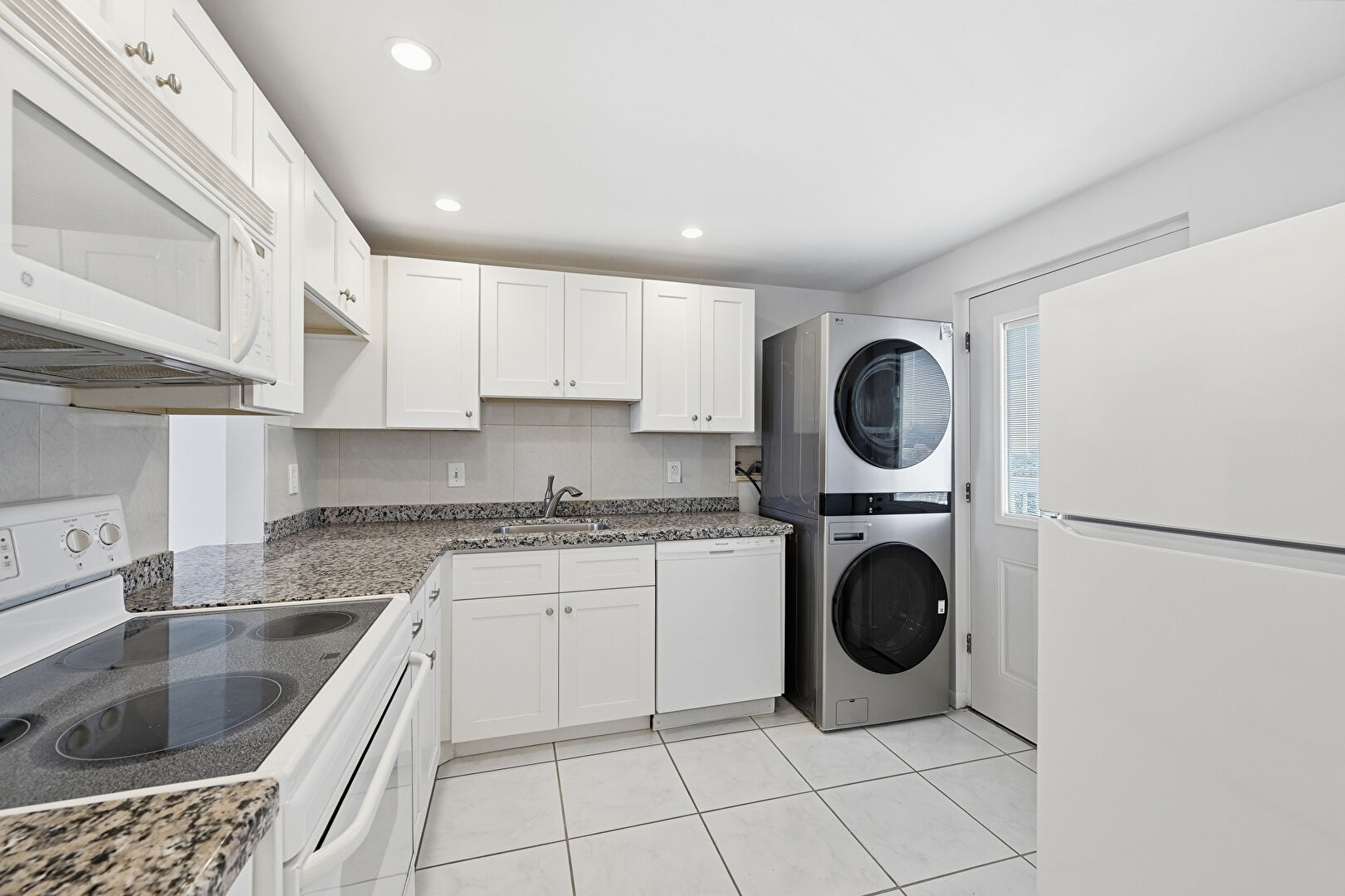 Baseboards Wall, Drywall, Laundry, Natural Light, Recessed Lighting, Shaker Cabinets, Stone Countertops, Tile Floor, Vent, Washer Hookup, Natural Light, Shaker Cabinets, Tile Floor