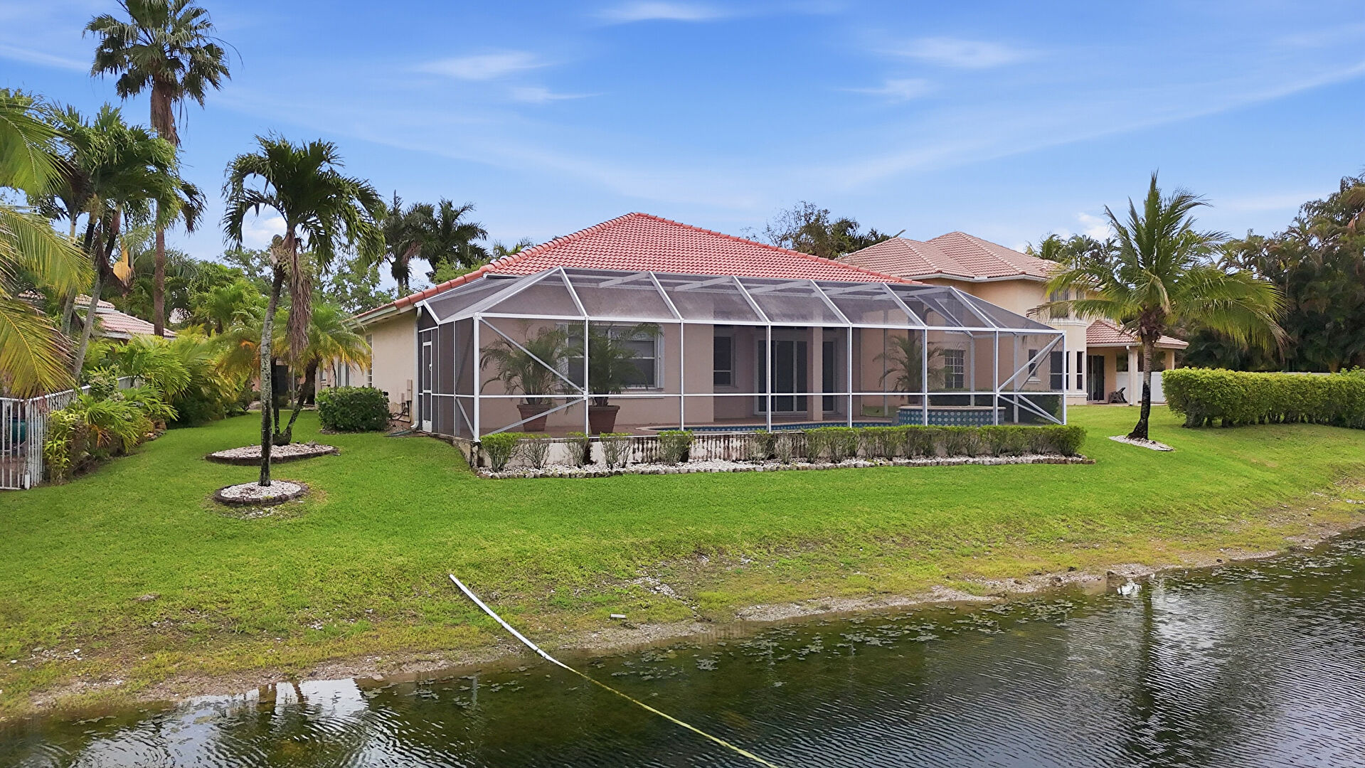 Fence, Lanai, Lawn, Pool, Stucco Siding, Sunroom, Tile Roof, Water View, Waterfront, Lanai, Waterfront