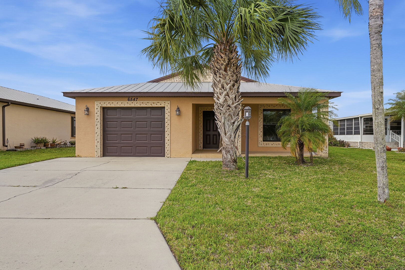 Central Ac, Driveway, Lawn, Metal Roof, Porch, Standing Seam Roof, Stucco Siding, Driveway, Electric Meter, Metal Roof, Stucco Siding