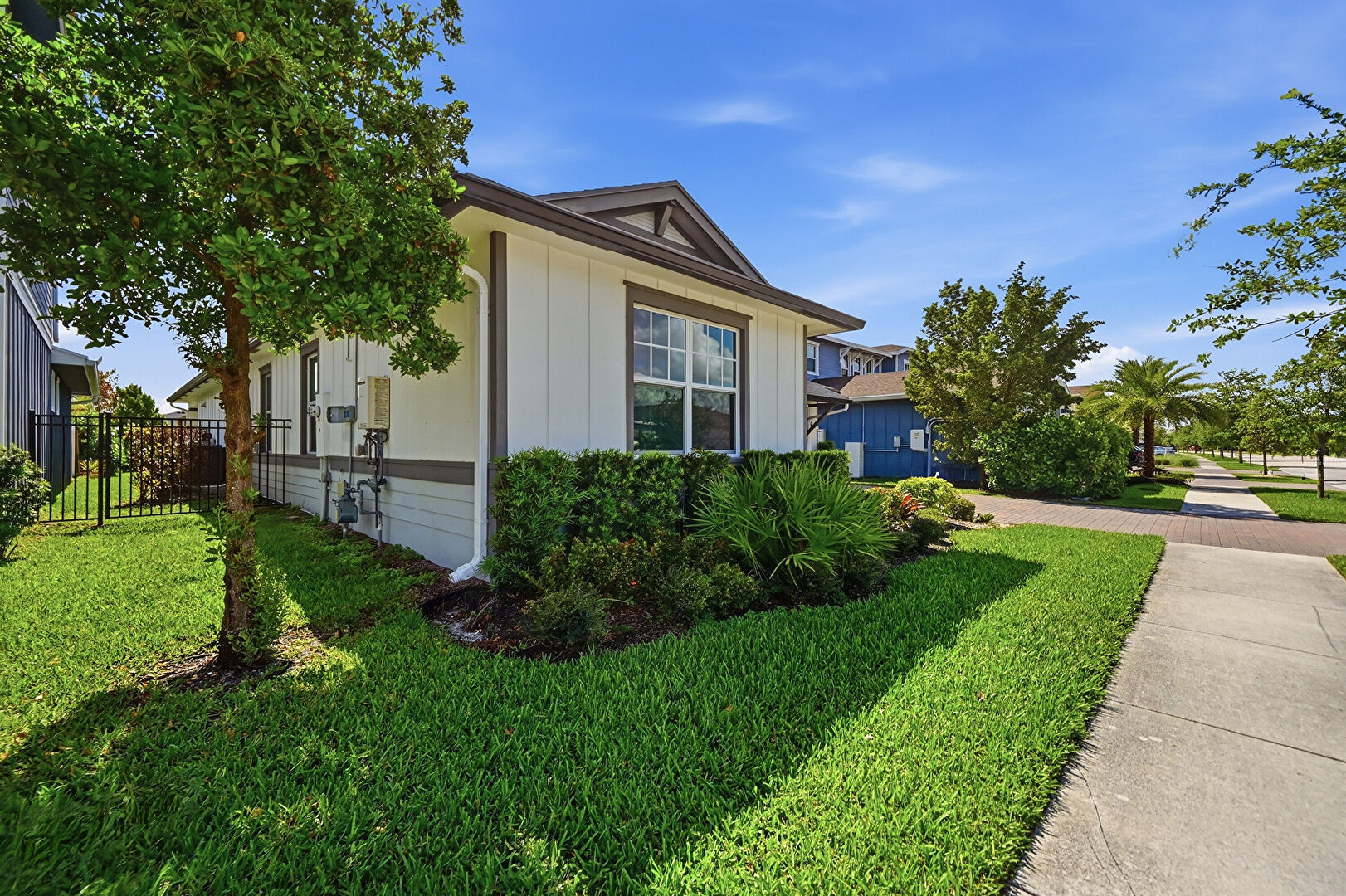 Board Batten Siding, Downspout, Driveway, Fence, Gutters, Lawn, Residential View, Stucco Siding, Vertical Siding, Water Heater, Water Meter, Horizontal Siding, Lawn, Shingle Roof