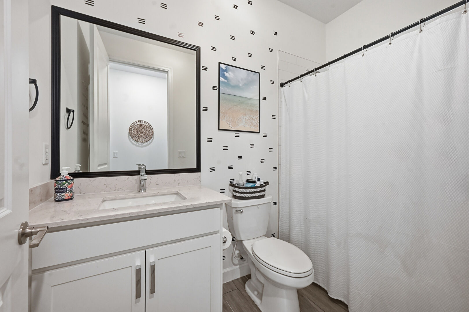 Drywall, Full Bathroom, Vanity, Wood Finish Floor