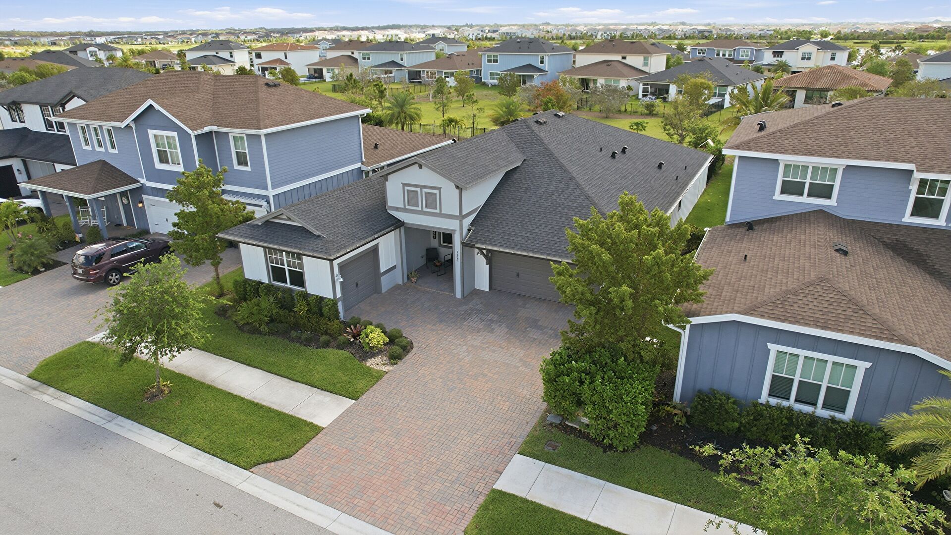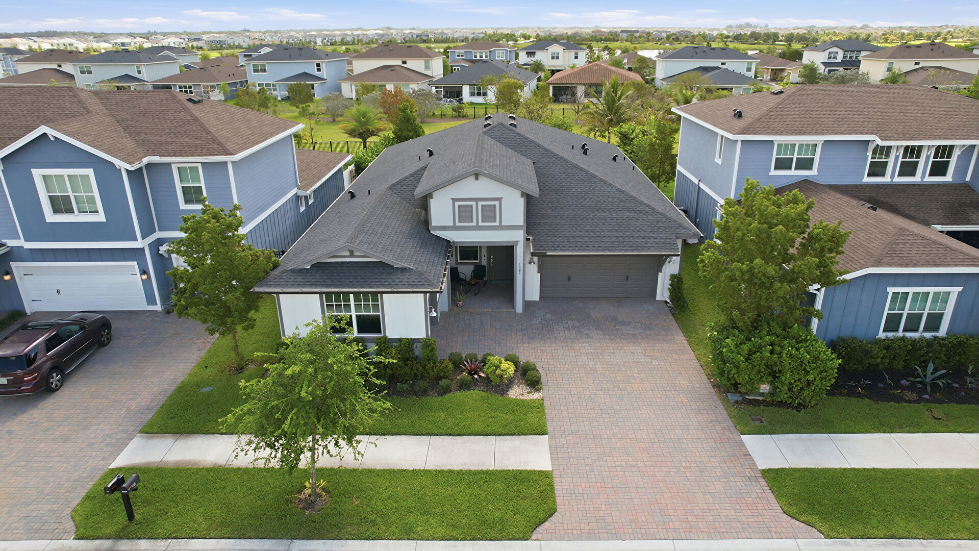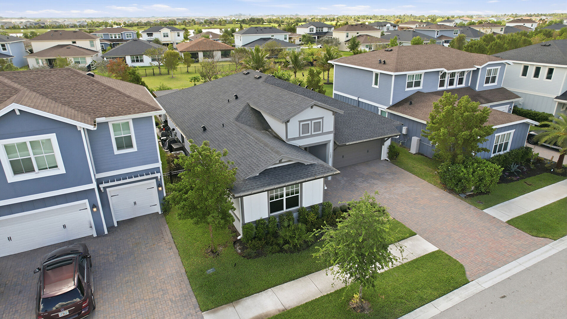 Built In Garage, Driveway, Lawn, Shingle Roof, Stucco Siding, Residential View