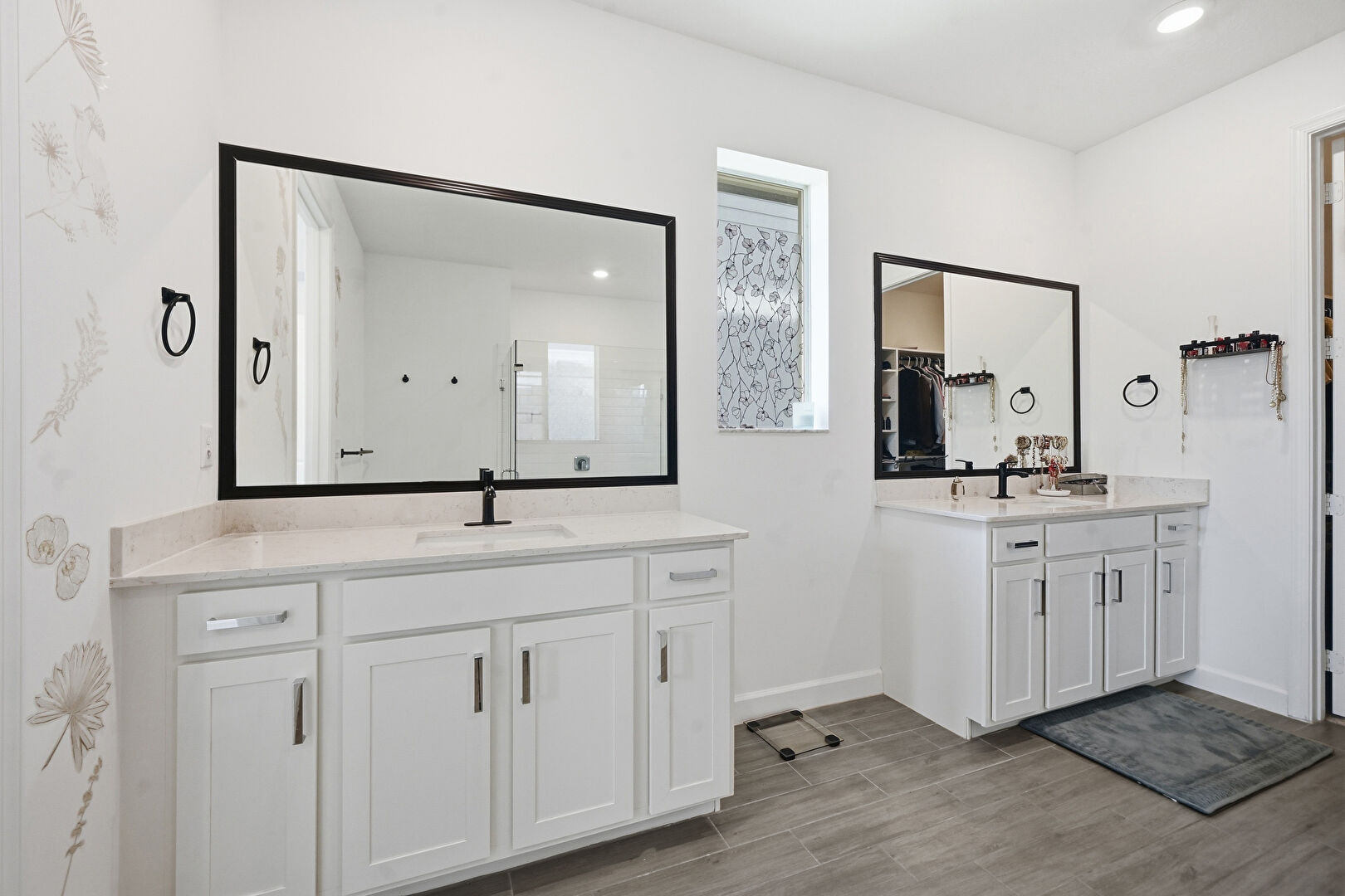 Baseboards Wall, Closet, Drywall, Full Bathroom, Recessed Lighting, Two Single Vanities, Walk In Closet, Water Closet, Wood Finish Floor, Full Bathroom, Vent