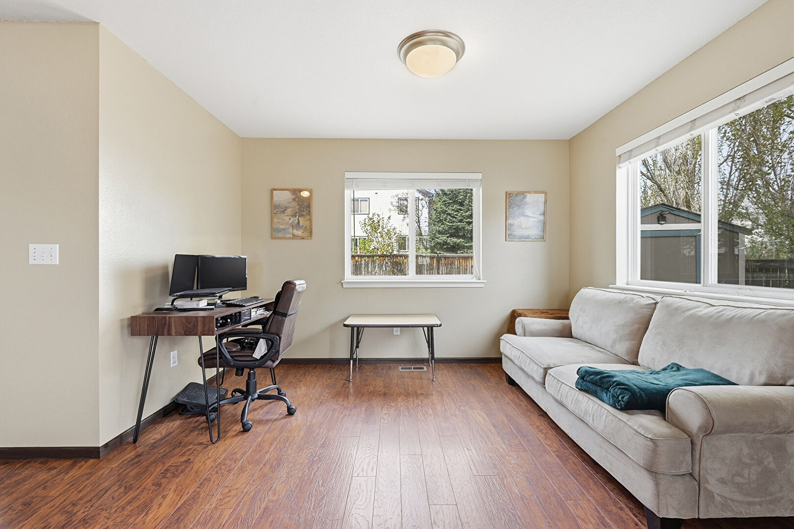 Baseboards Wall, Drywall, Natural Light, Office Area, Vent, Wood Finish Floor