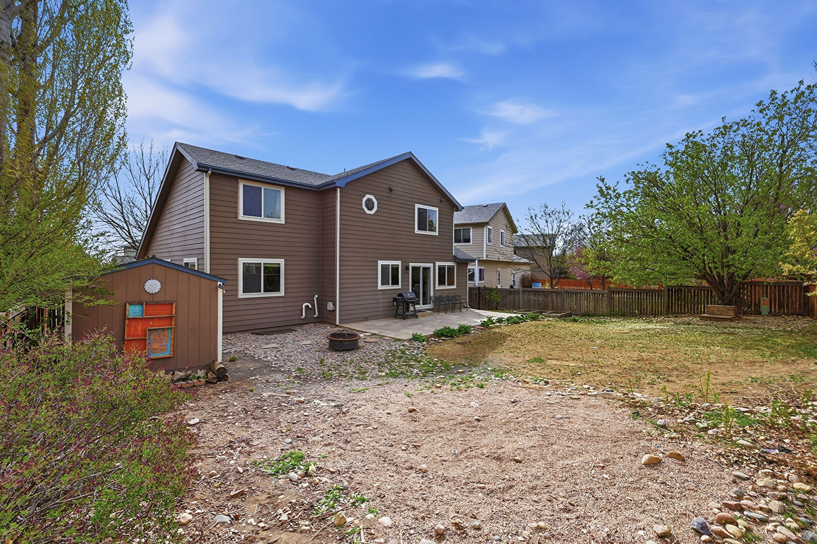 Downspout, Fence, Fire Pit, Grill, Lawn, Outdoor Structure, Patio, Shed, Horizontal Siding