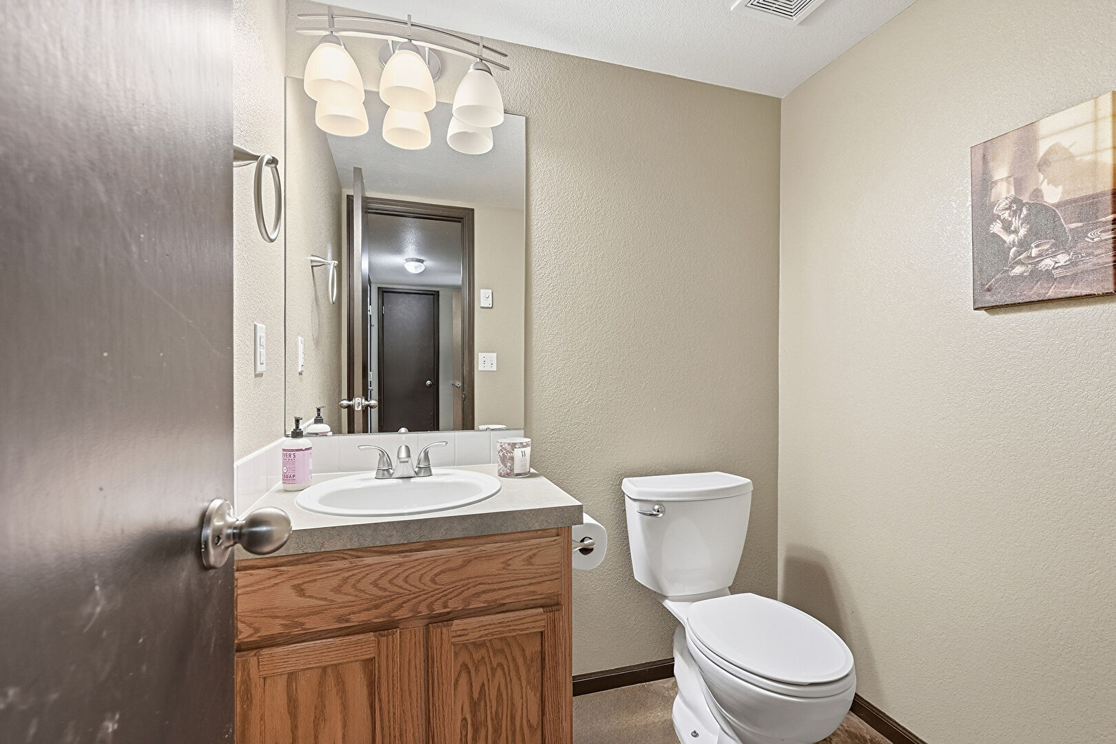 Baseboards Wall, Half Bathroom, Textured Wall, Vanity, Vent