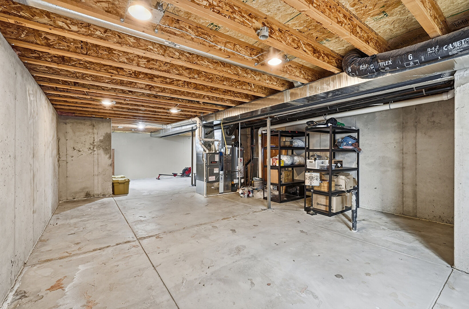 Basement, Furnace, Vent, Water Heater, Concrete Foundation, Drywall