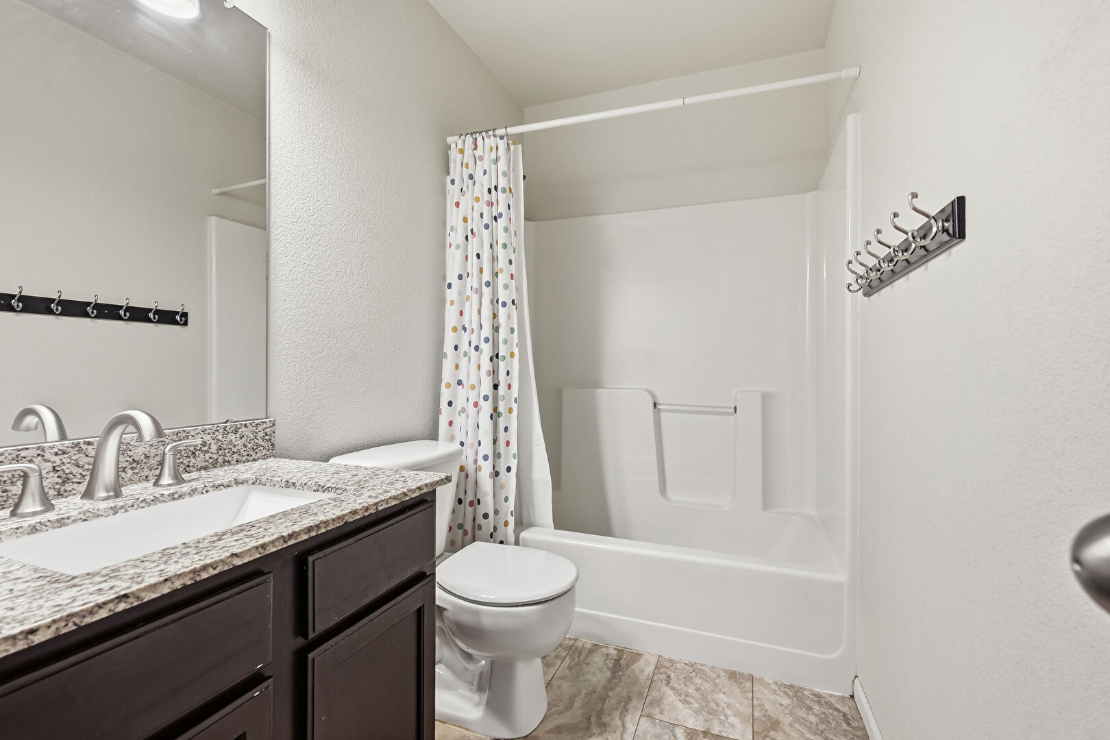 Baseboards Wall, Combined Bath Shower, Full Bathroom, Vanity, Textured Wall