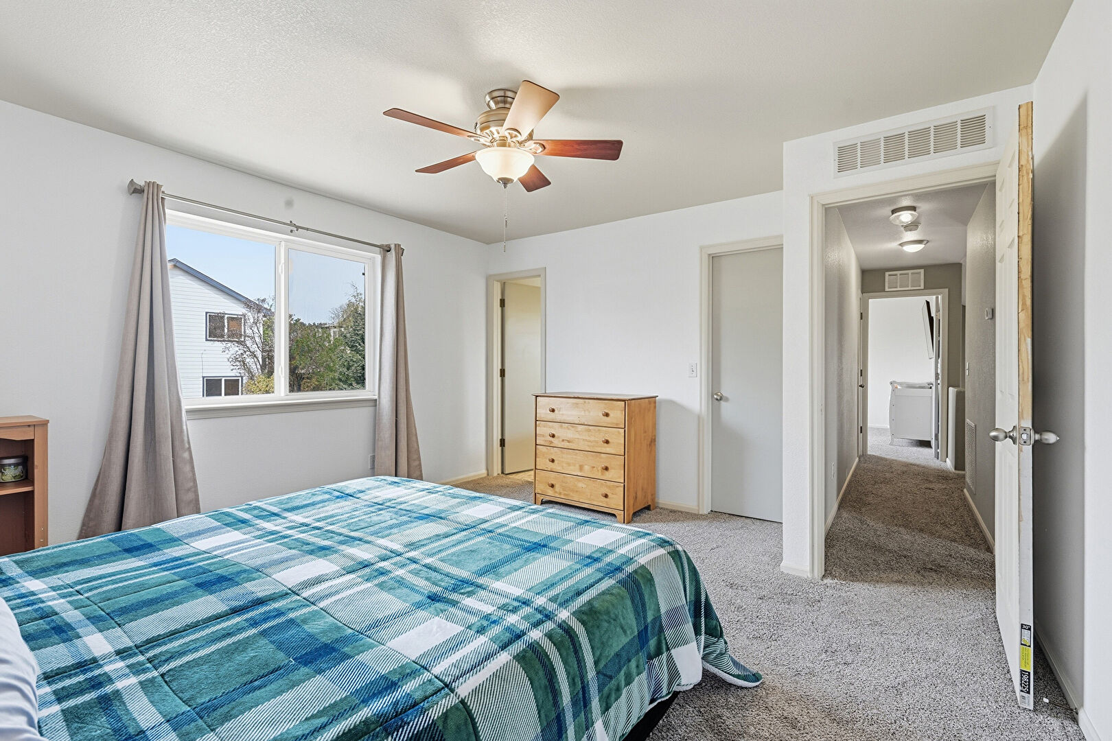 Baseboards Wall, Carpet, Ceiling Fan, Drywall, Natural Light, Smoke Carbon Monoxide Detector, Vent, Carpet, Drywall, Vent