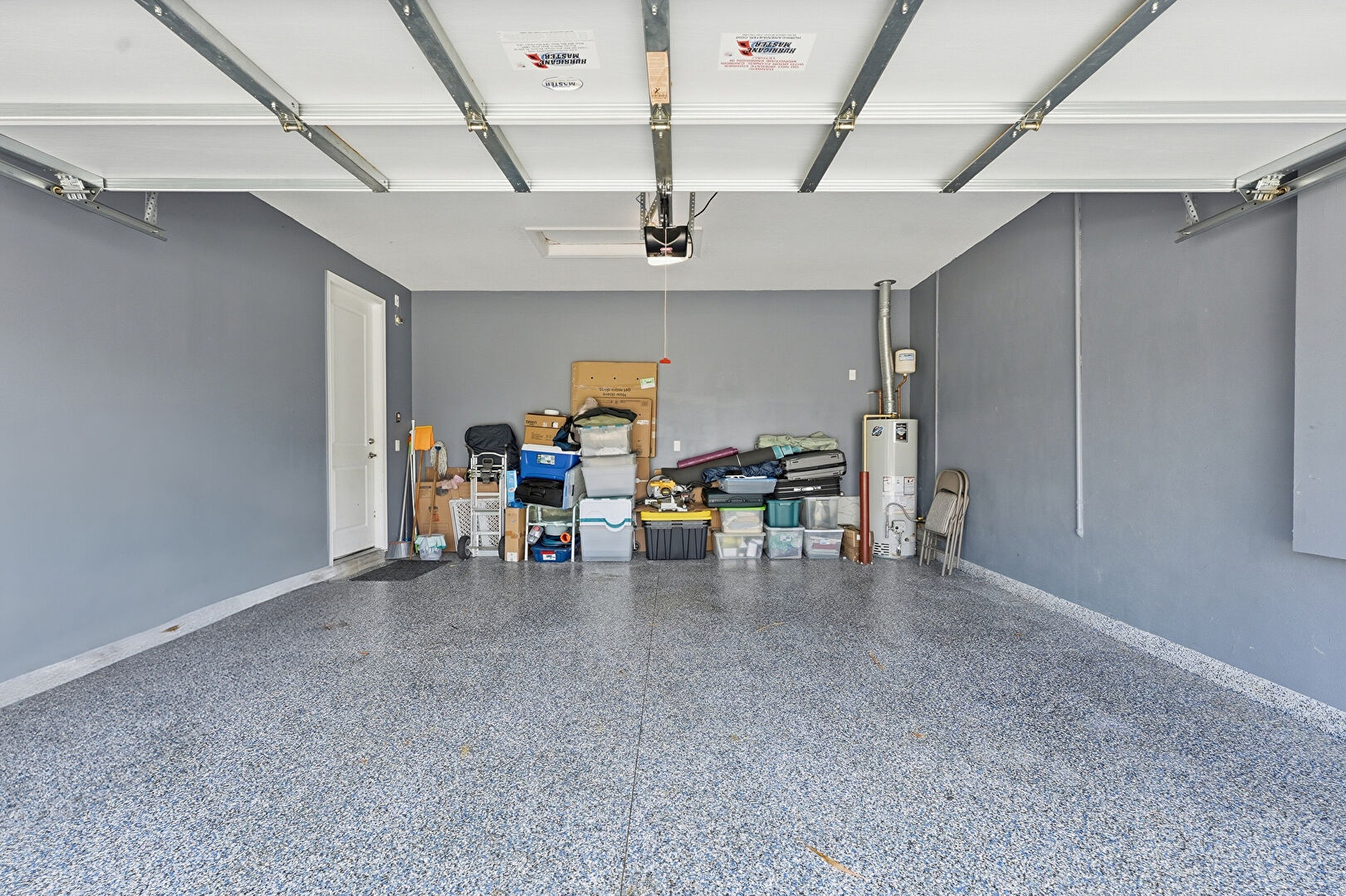 Drywall, Garage, Garage Door Opener, Water Heater, Baseboards Wall