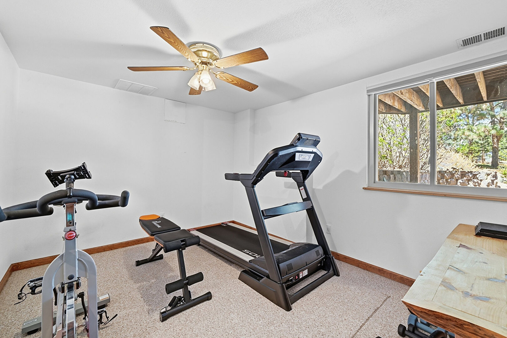 Baseboards Wall, Carpet, Ceiling Fan, Drywall, Natural Light, Vent
