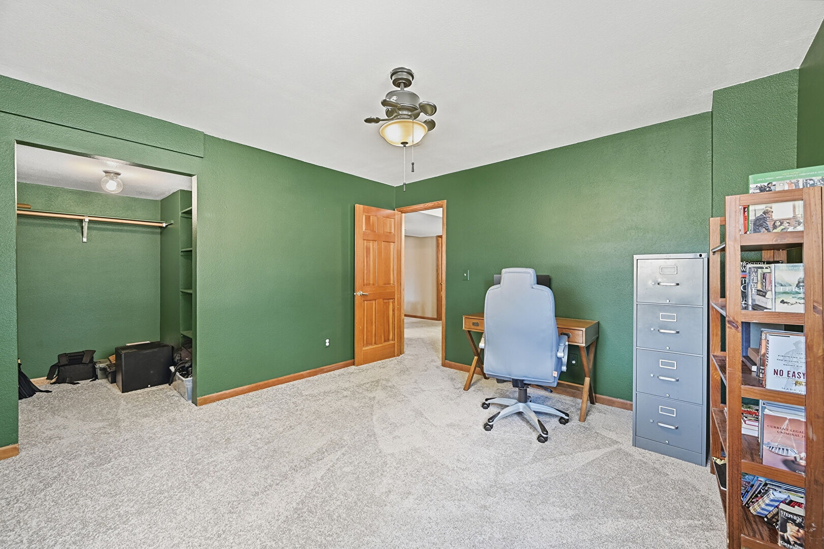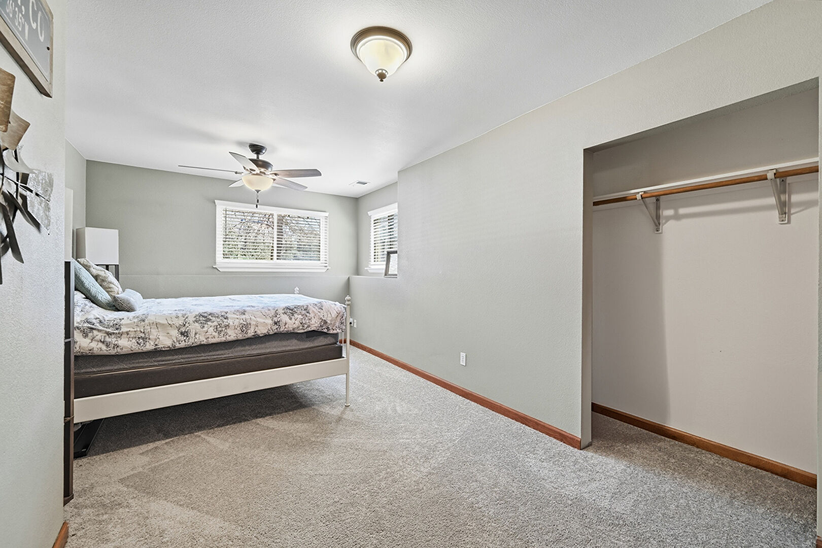 Baseboards Wall, Closet, Drywall, Natural Light, Wood Finish Floor, Ceiling Fan
