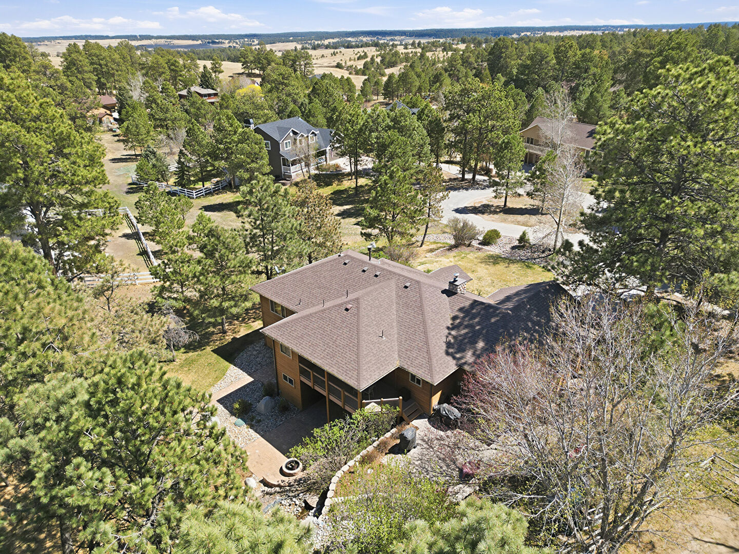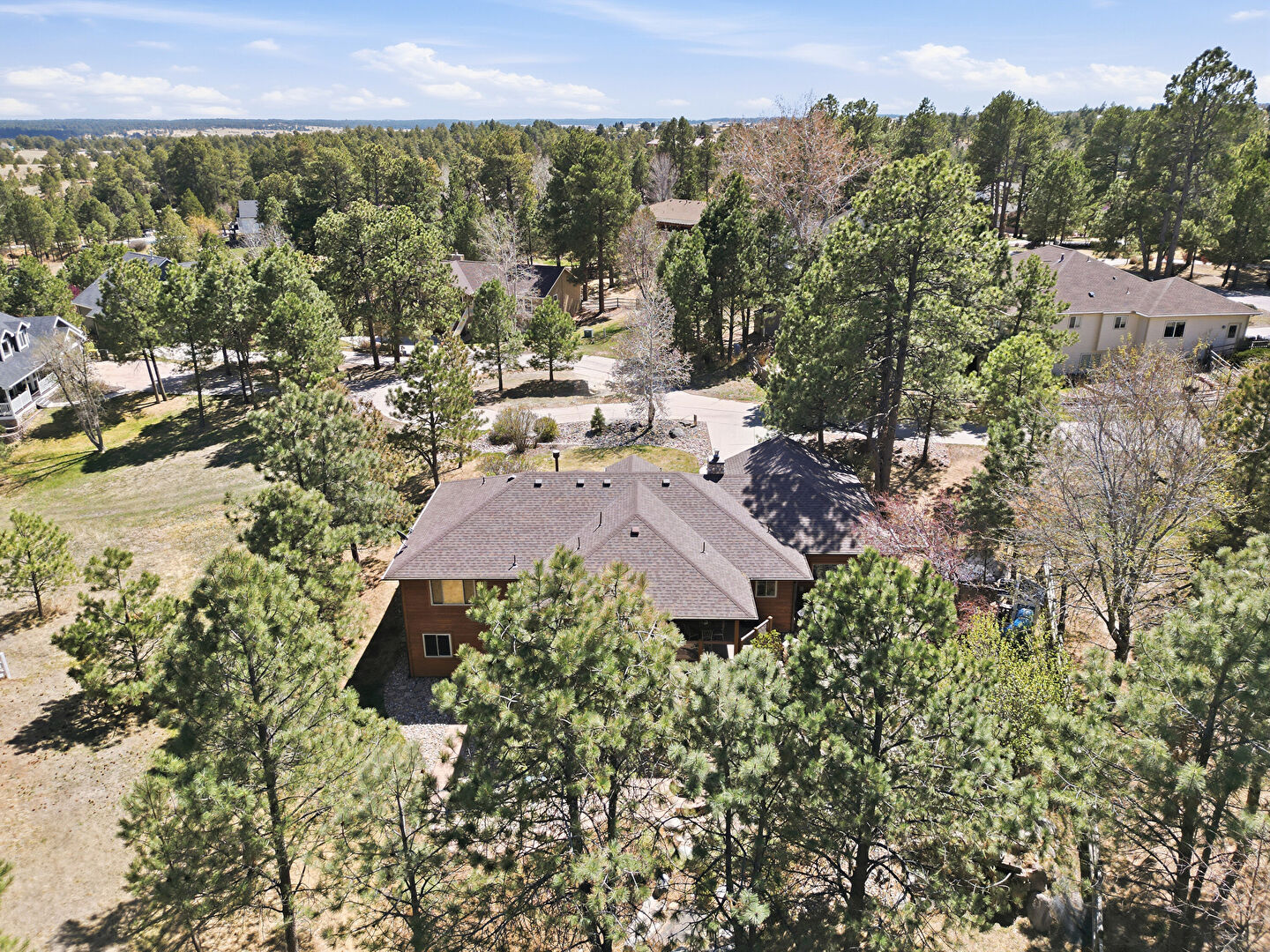 Chimney, Driveway, Horizontal Siding, Lawn, Shingle Roof, Woods View, Residential View, Stone Siding