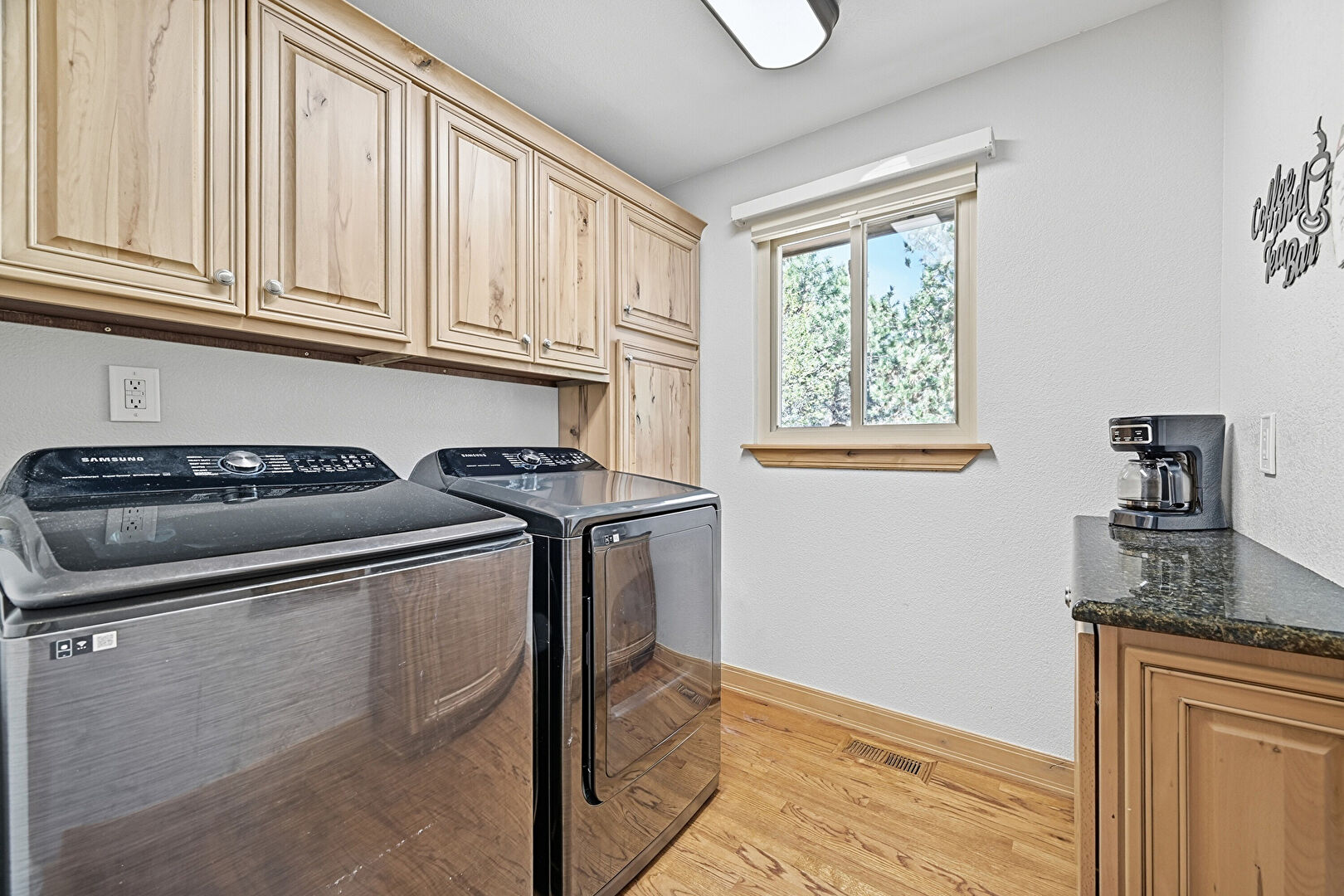 Baseboards Wall, Drywall, Laundry, Natural Light, Textured Wall, Wood Finish Floor, Vent