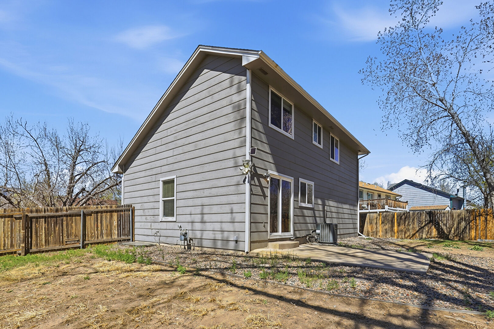 Central Ac, Concrete Foundation, Downspout, Fence, Gas Meter, Gutters, Horizontal Siding, Patio, Gutters, Patio