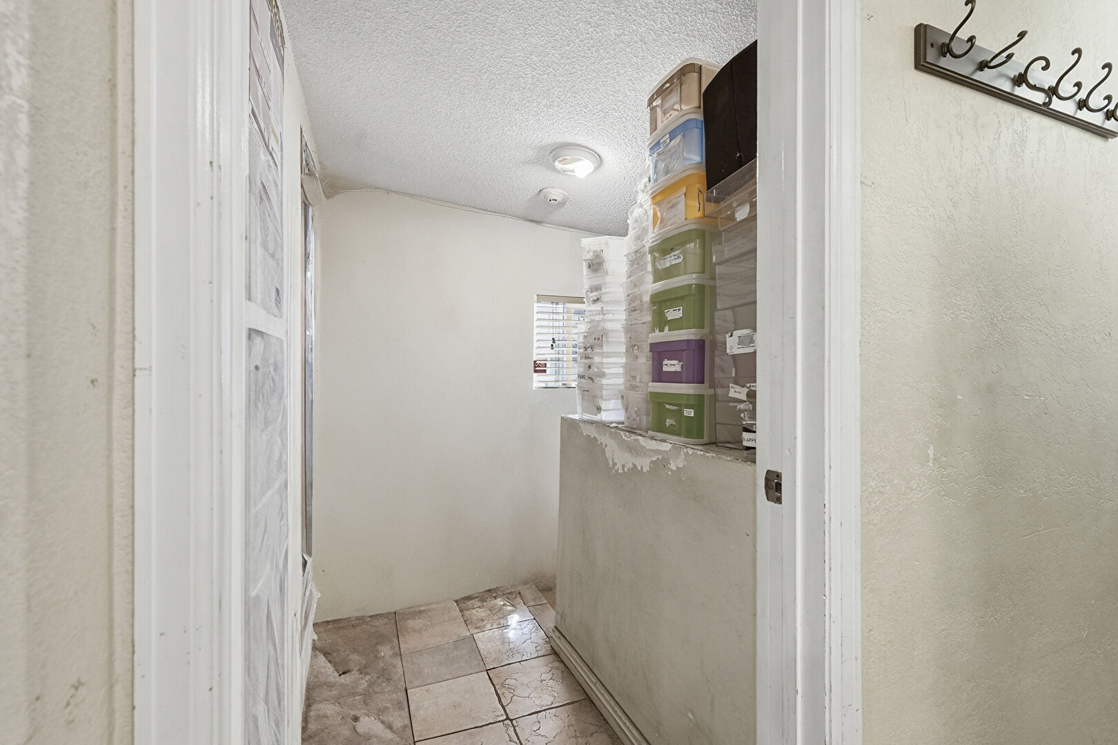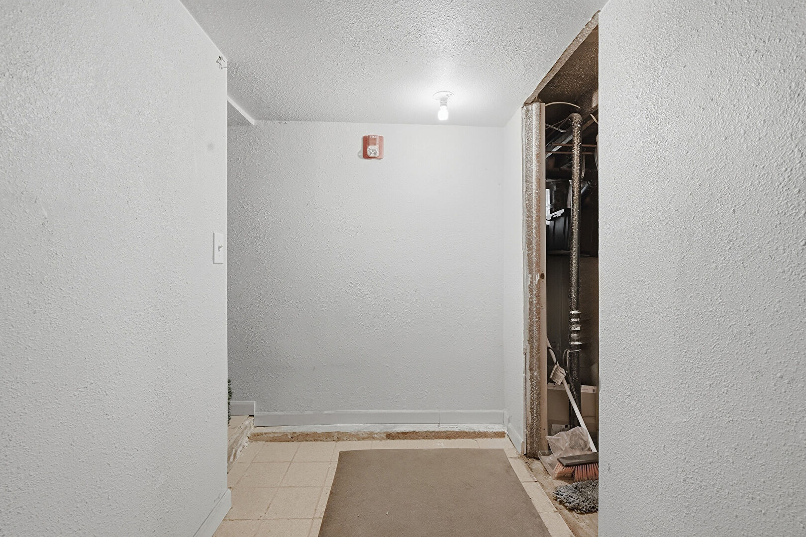 Drywall, Natural Light, Smoke Carbon Monoxide Detector, Tile Floor, Textured Ceiling