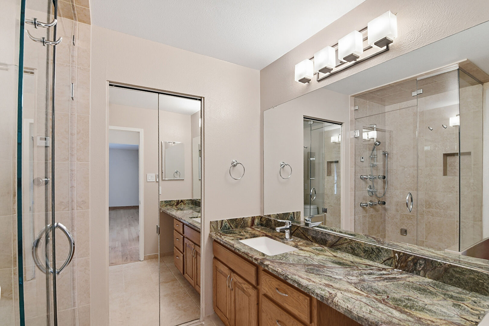 Baseboards Wall, Drywall, Full Bathroom, Vanity, Full Bathroom, Tile Floor, Wood Finish Floor