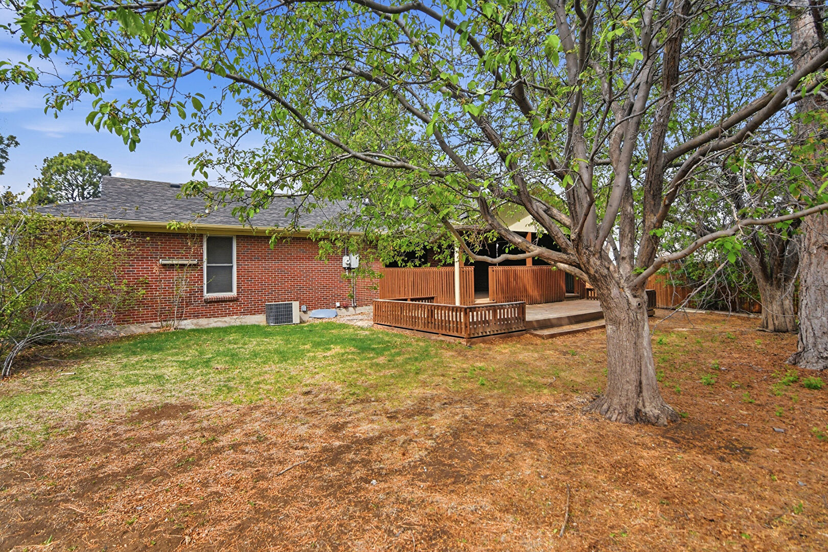 Brick Siding, Central Ac, Concrete Foundation, Deck, Electric Meter, Fence, Lawn, Shingle Roof, Deck, Fence