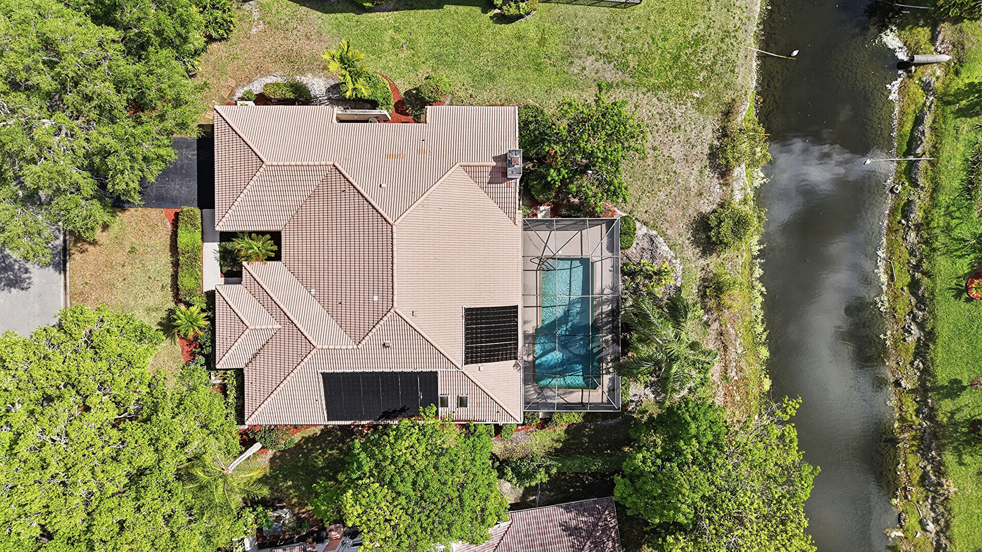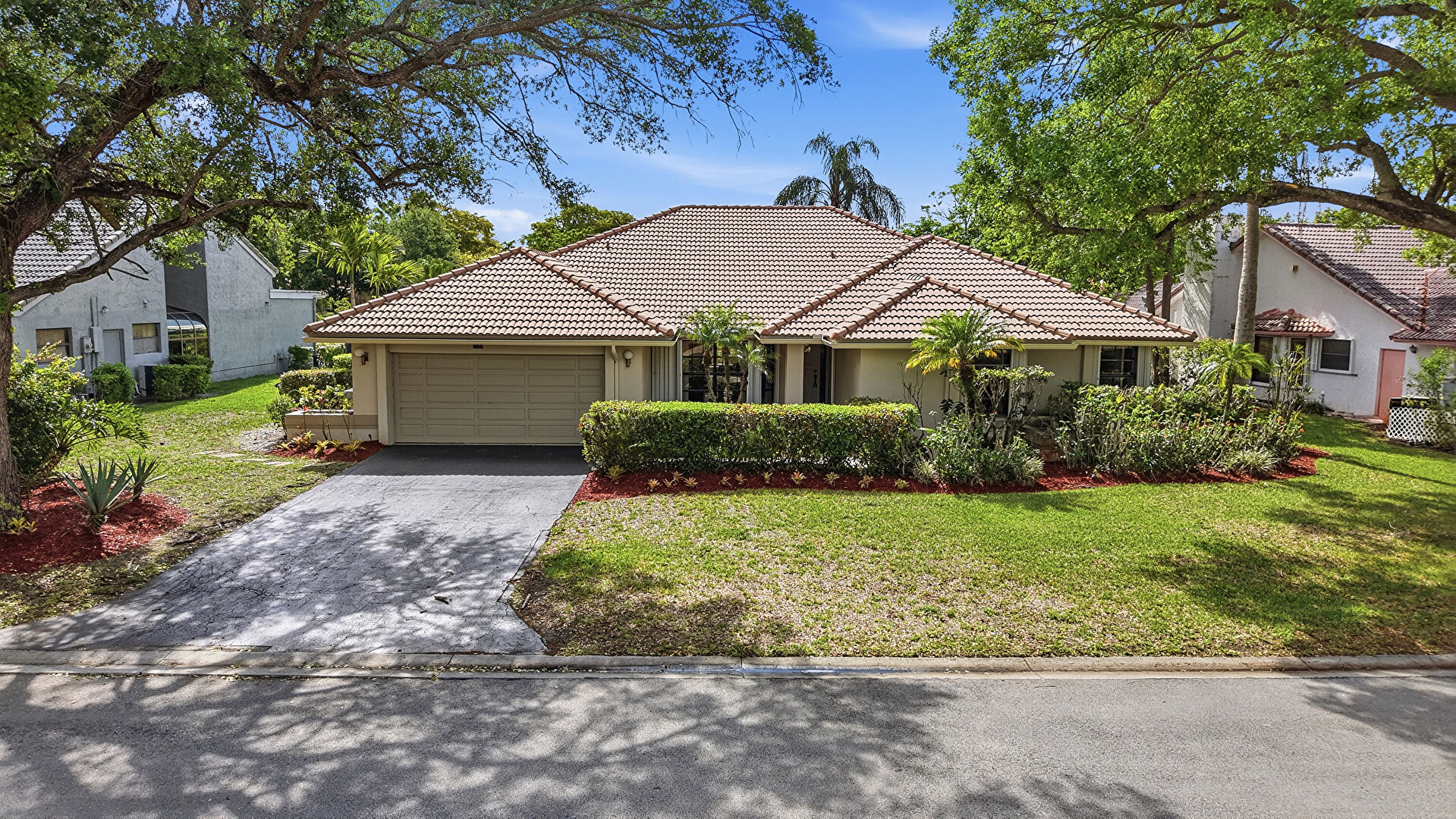 Driveway, Lawn, Stucco Siding, Tile Roof, Lawn, Stucco Siding, Tile Roof