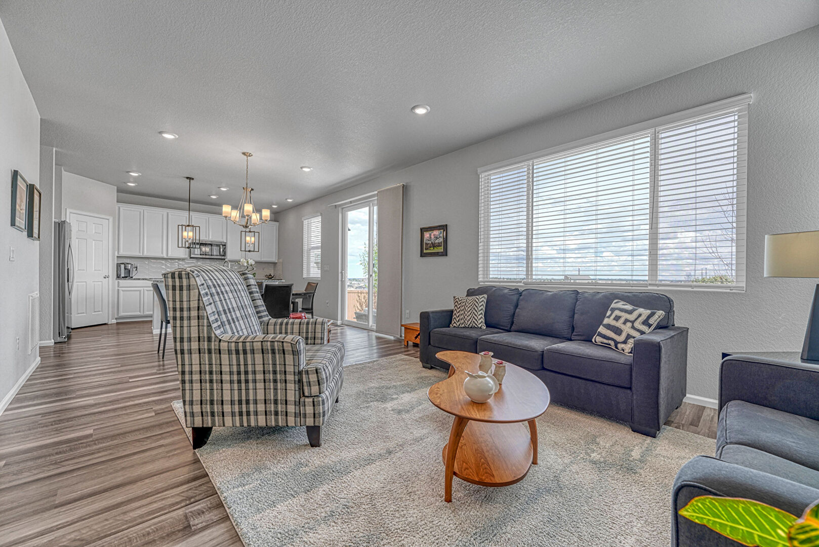 Baseboards Wall, Drywall, Fireplace, L Shaped Kitchen, Natural Light, Notable Chandelier, Recessed Lighting, Textured Ceiling, Textured Wall, Wood Finish Floor, Recessed Lighting, Textured Ceiling, Wood Finish Floor