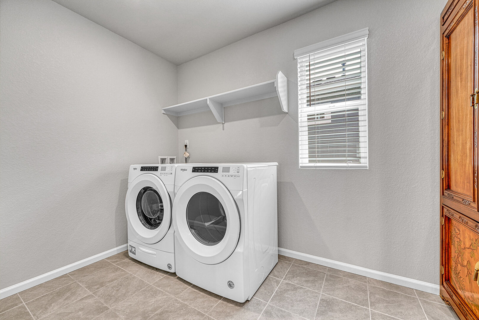 Baseboards Wall, Laundry, Textured Wall, Tile Floor, Washer Hookup, Natural Light