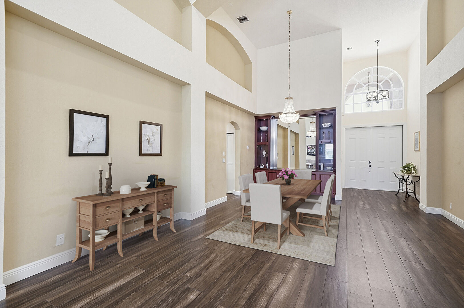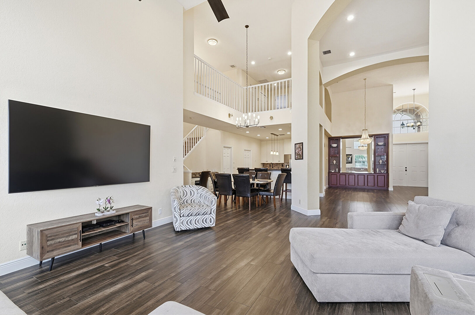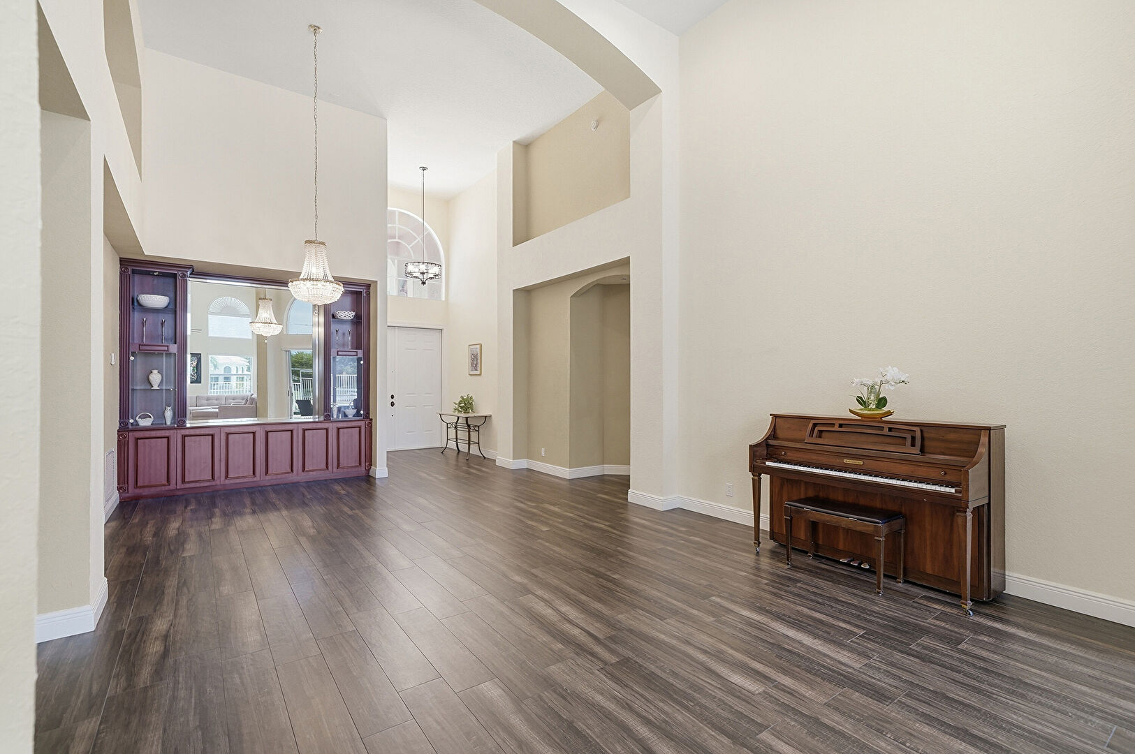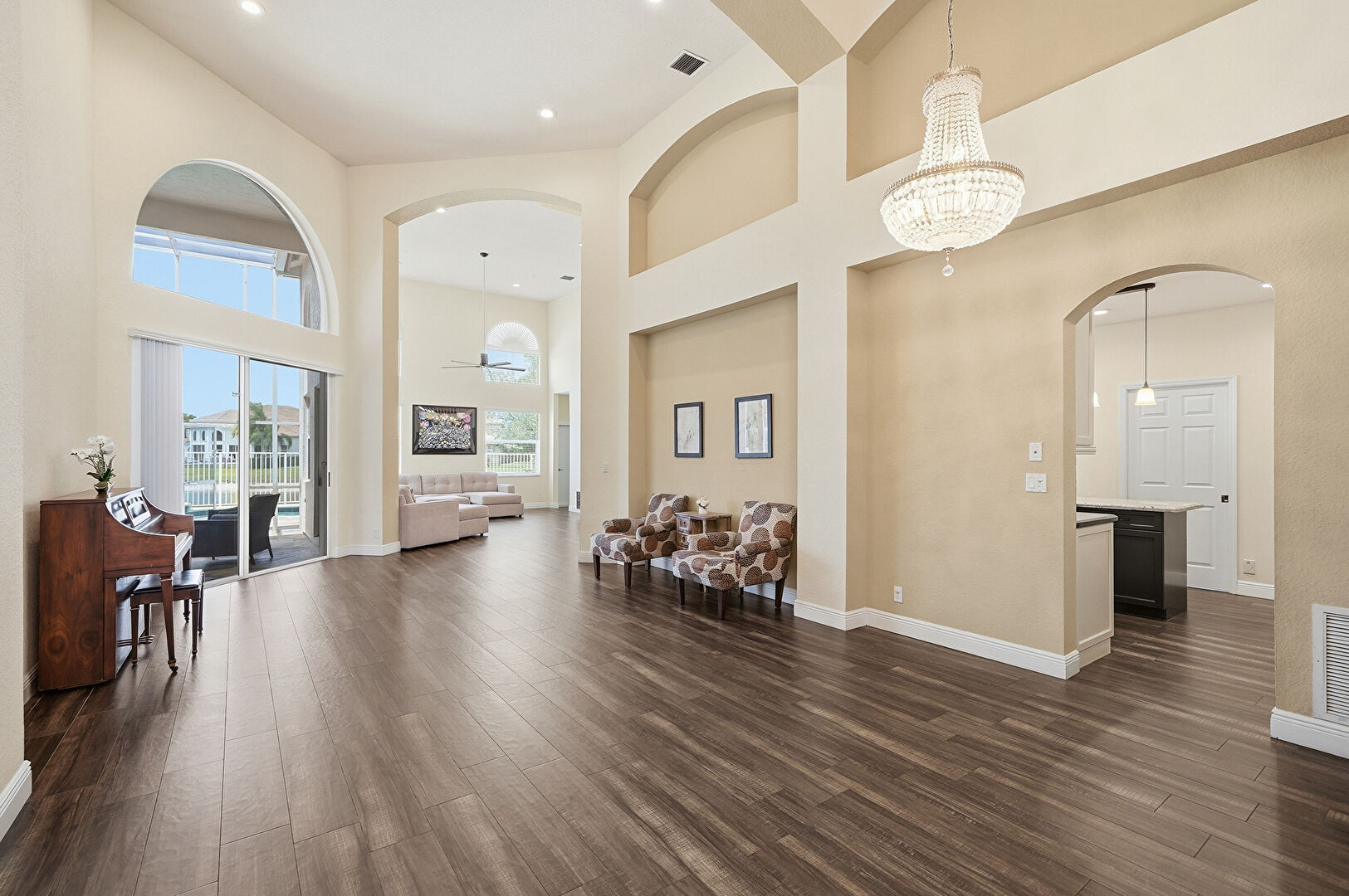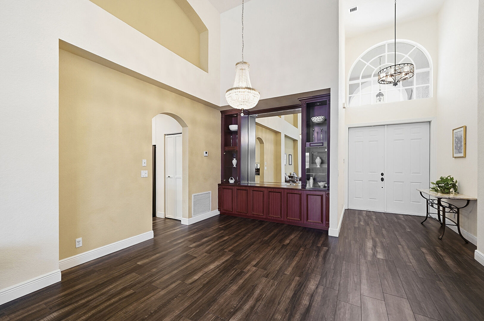 Arched Walkways, Baseboards Wall, Ceiling Fan, Drywall, High Ceiling, Natural Light, Notable Chandelier, Recessed Lighting, Vent, Wood Finish Floor, Ceiling Fan, Drywall, High Ceiling, Notable Chandelier, Wood Finish Floor