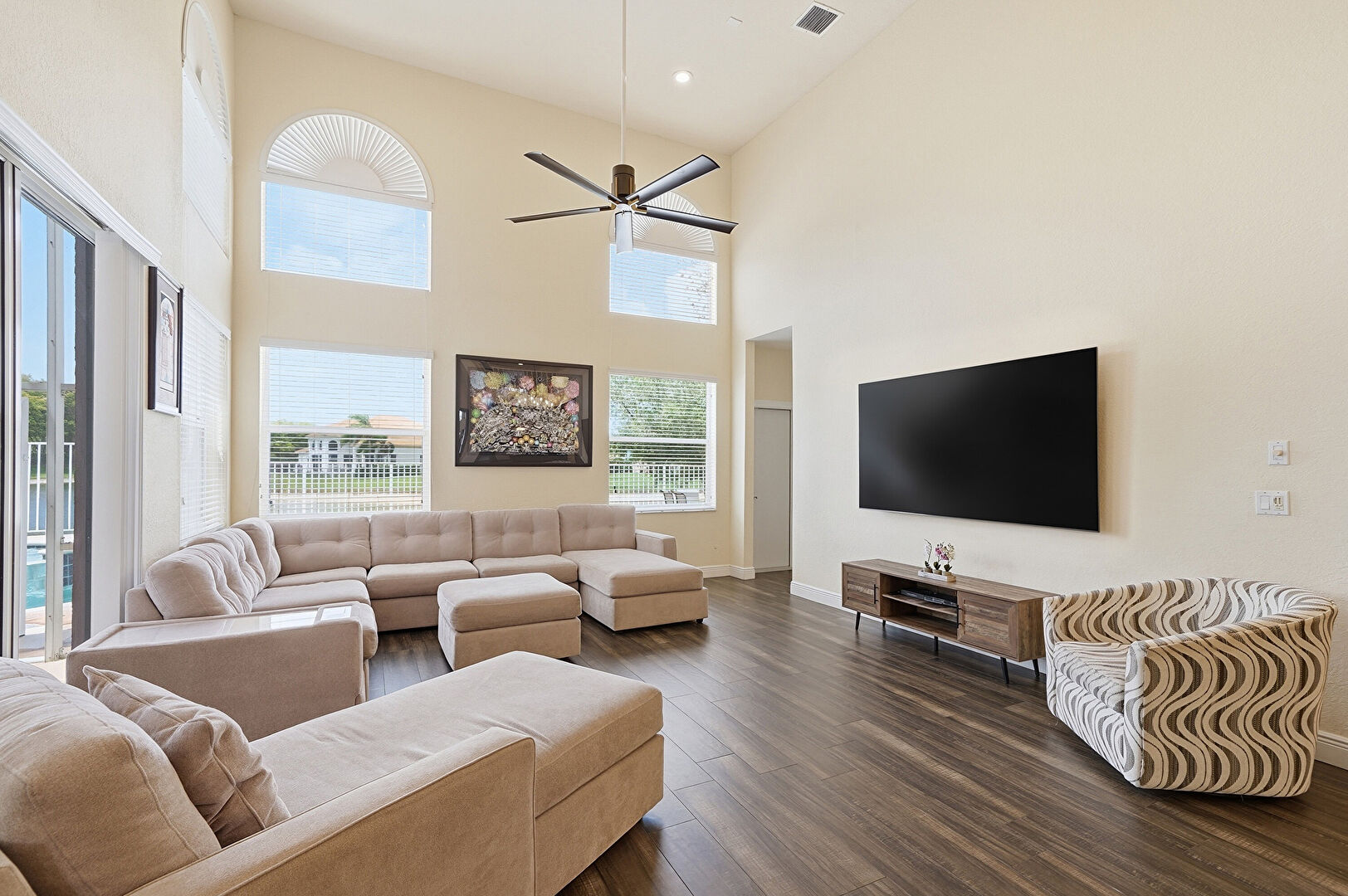 Ceiling Fan, Hot Tub, Lanai, Natural Light, Outdoor Living Space, Patio, Sunroom