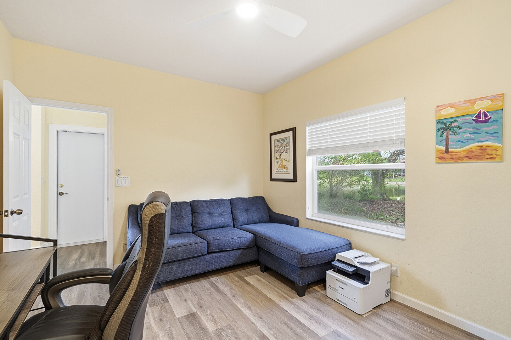 Baseboards Wall, Ceiling Fan, Drywall, Natural Light, Office Area, Recessed Lighting, Wood Finish Floor, Baseboards Wall, Natural Light