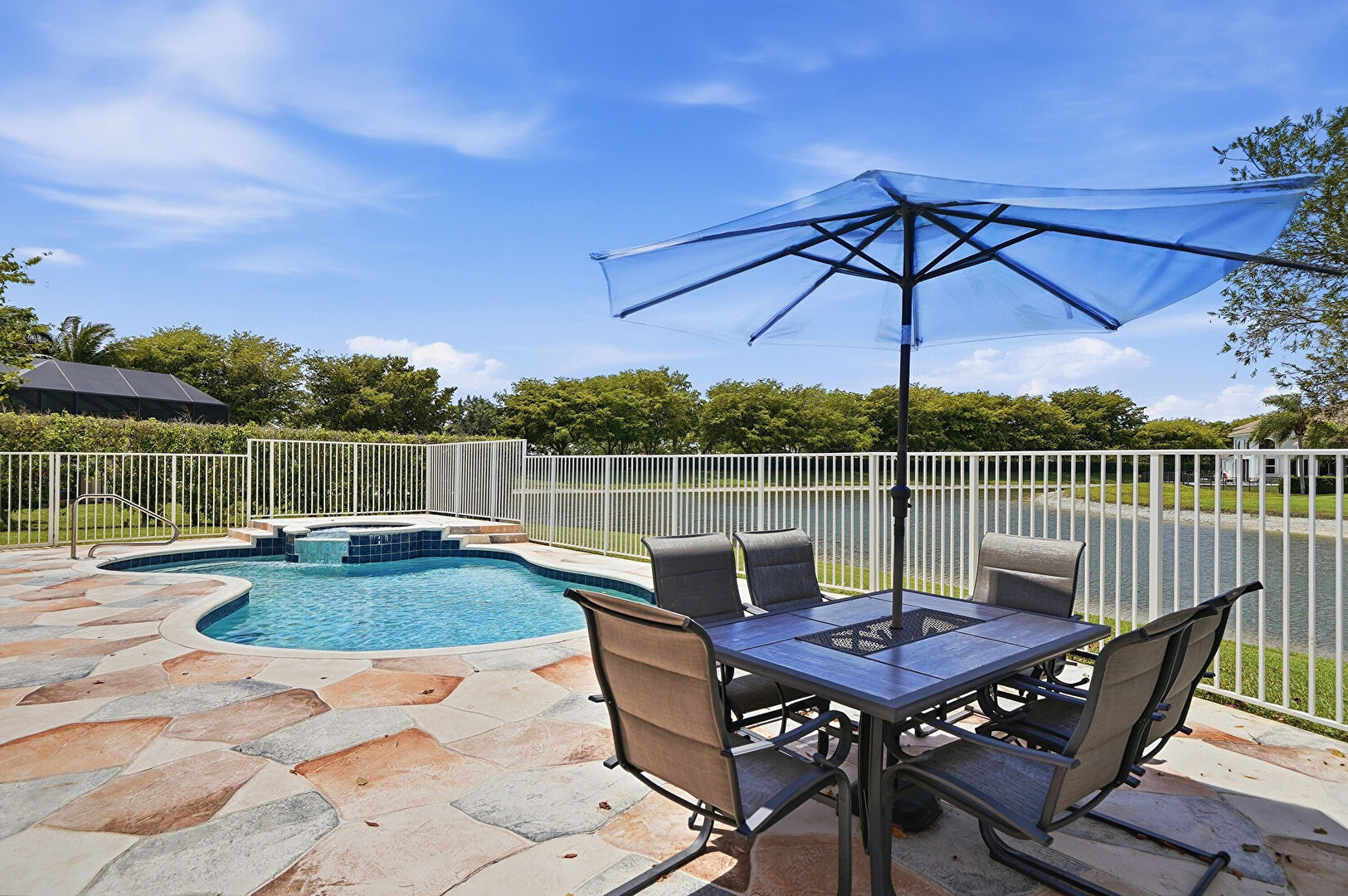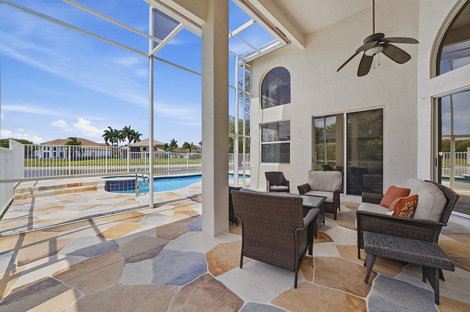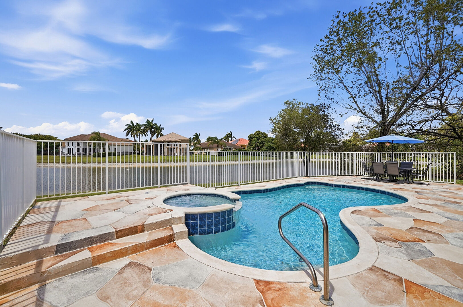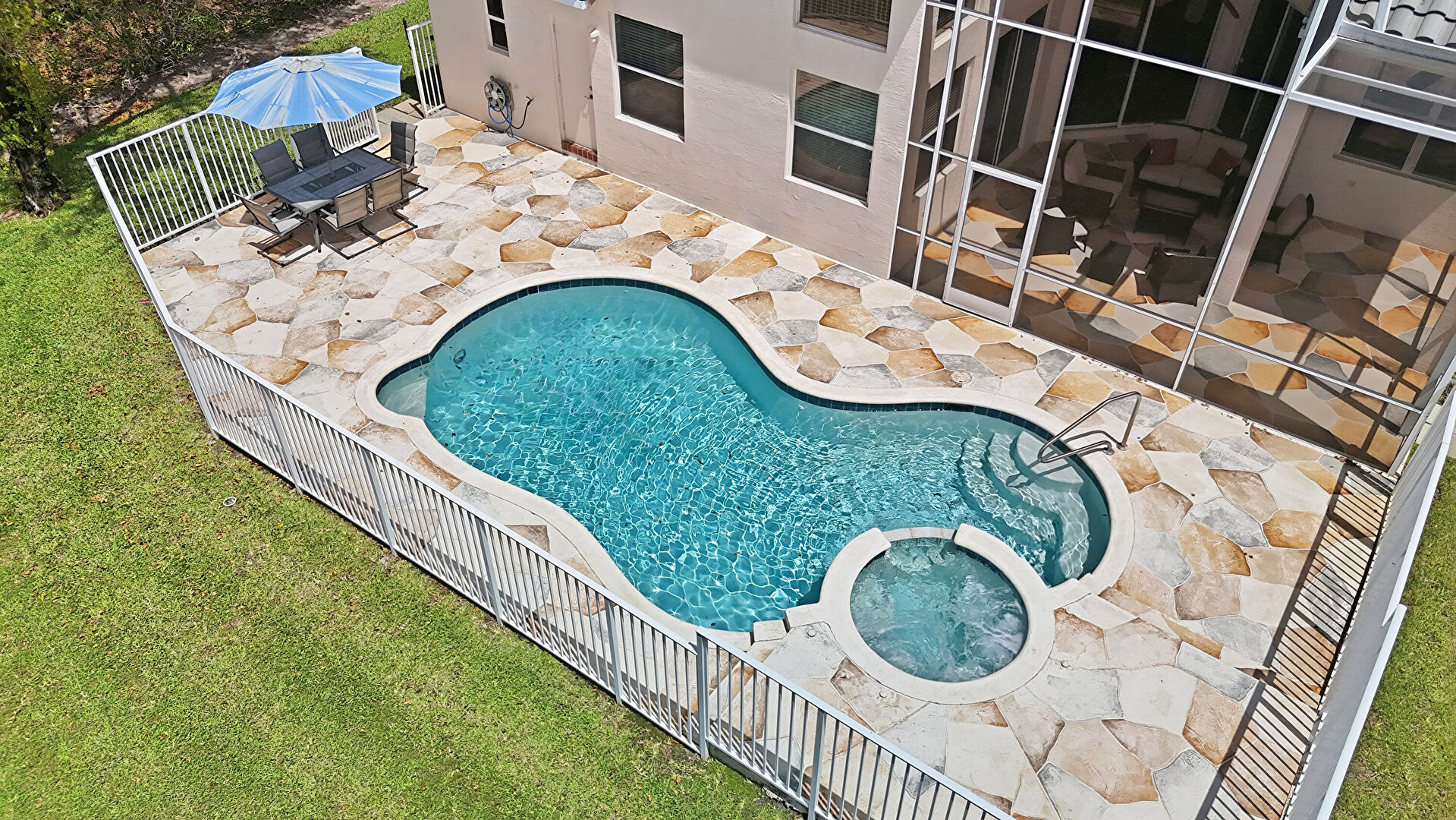 Ceiling Fan, Fence, Outdoor Living Space, Patio, Pool, Pool Hot Tub Combo, Residential View, Sunroom, Hot Tub
