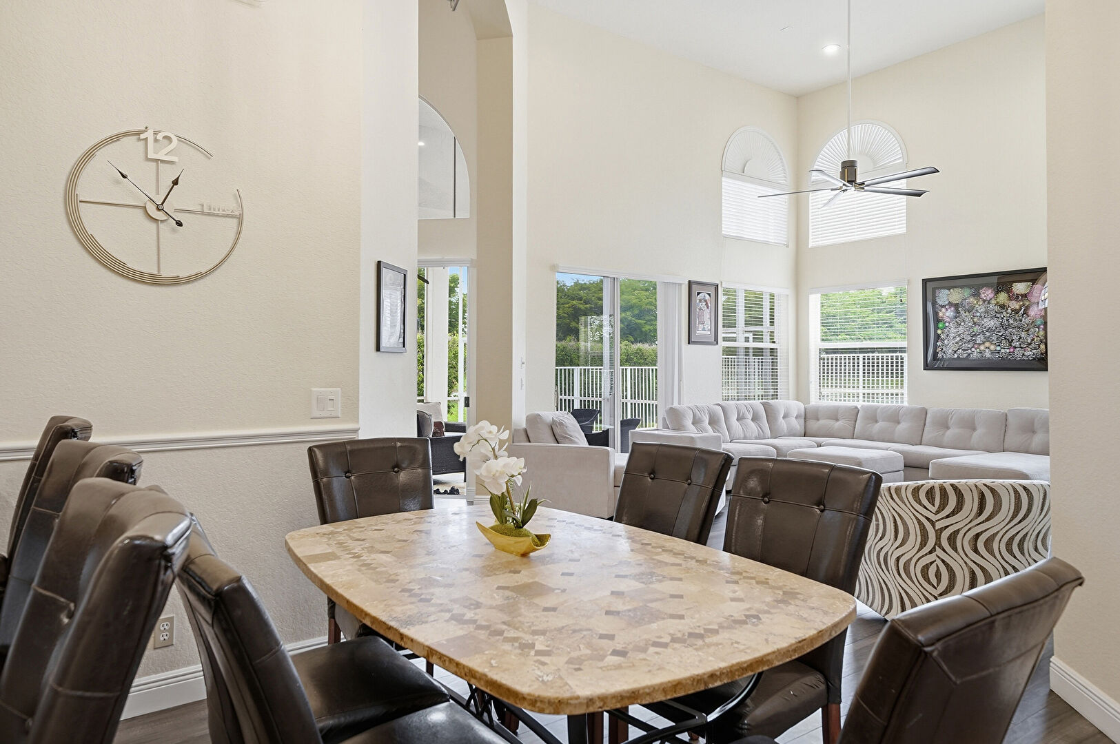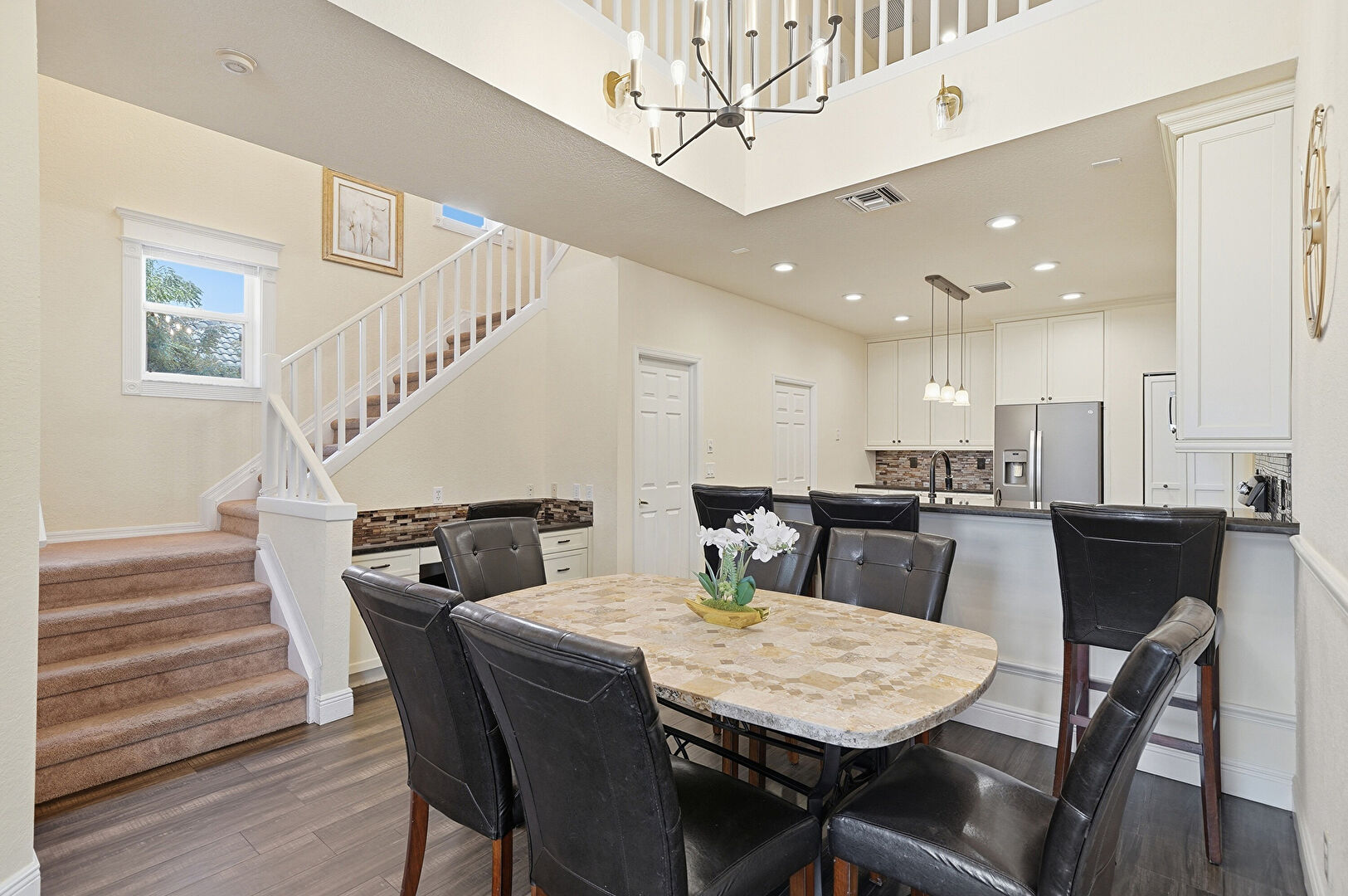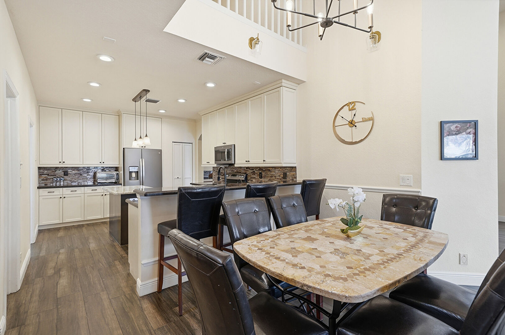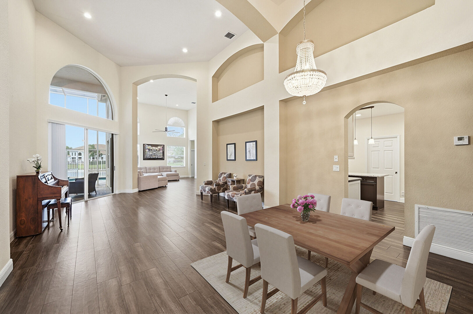 Arched Walkways, Baseboards Wall, Ceiling Fan, Drywall, High Ceiling, Natural Light, Notable Chandelier, Recessed Lighting, Stairs, Toaster, U Shaped Kitchen, Vent, Wood Finish Floor, Baseboards Wall, Drywall, High Ceiling, Natural Light, Notable Chandelier