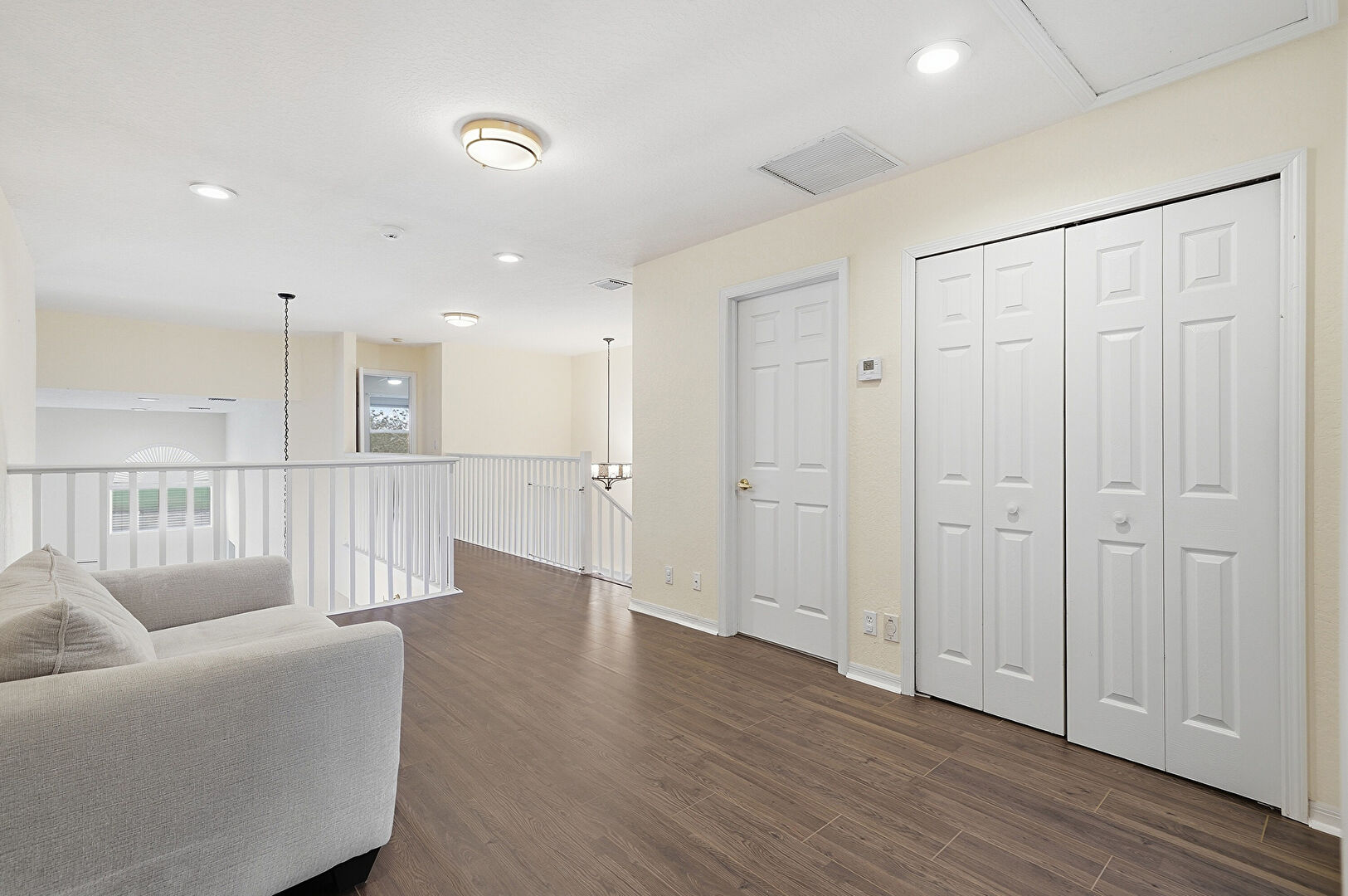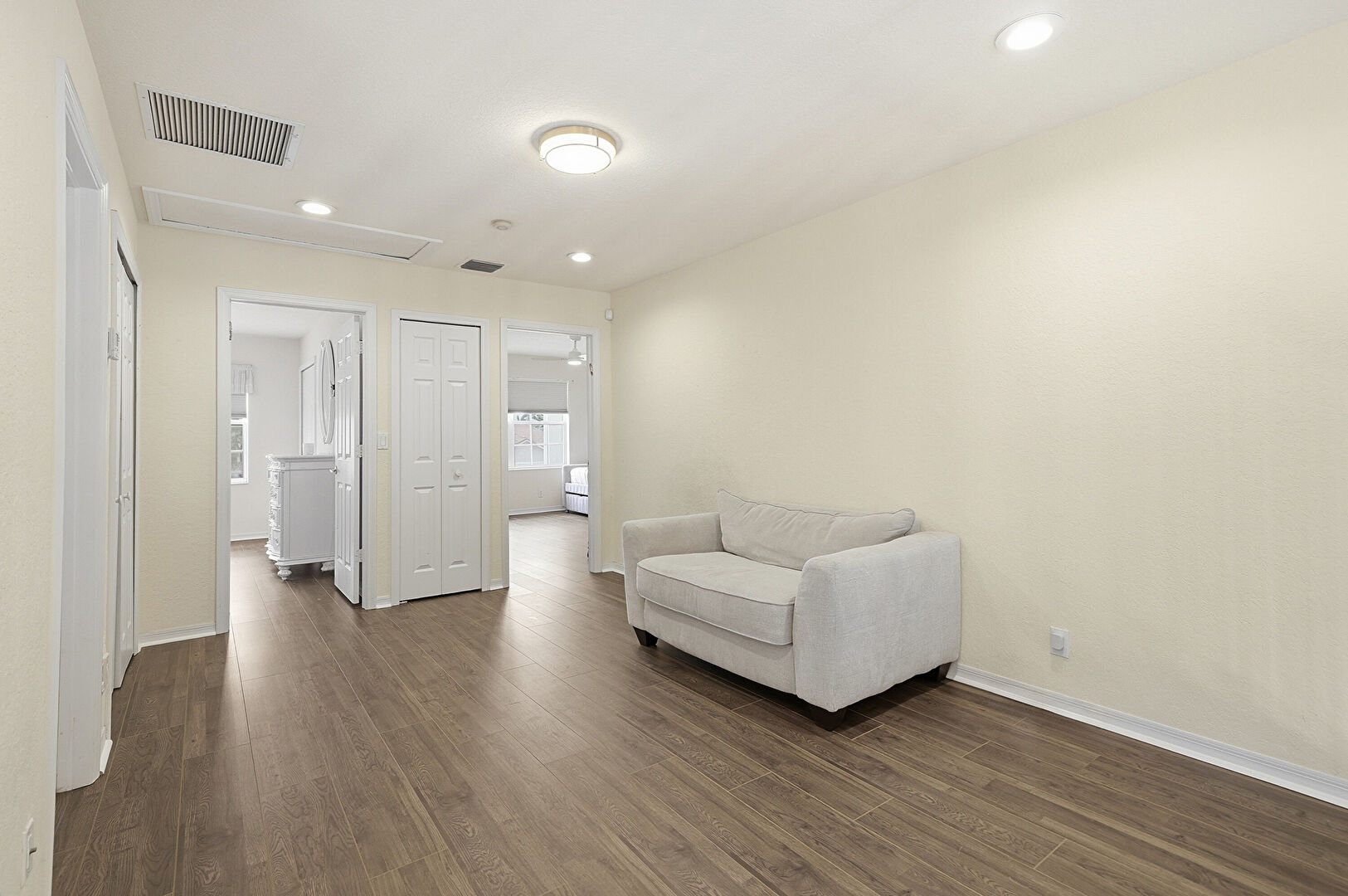 Baseboards Wall, Drywall, Recessed Lighting, Scuttle, Vent, Wood Finish Floor, Natural Light