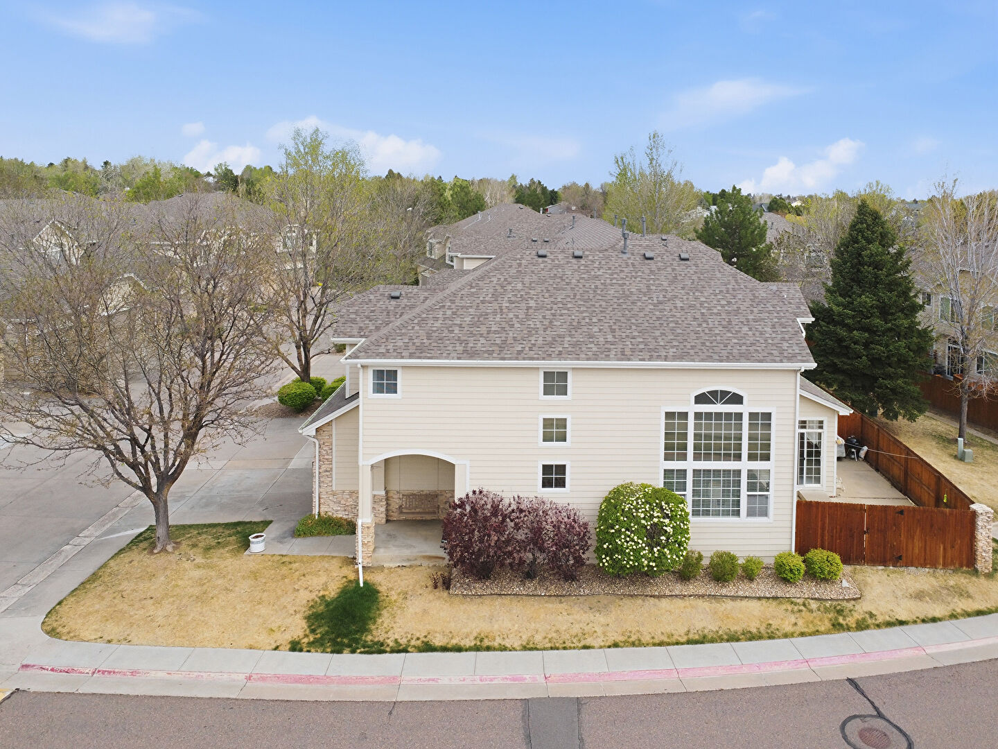 Downspout, Fence, Gate, Gutters, Horizontal Siding, Shingle Roof, Stone Siding, Woods View, Fence, Gutters