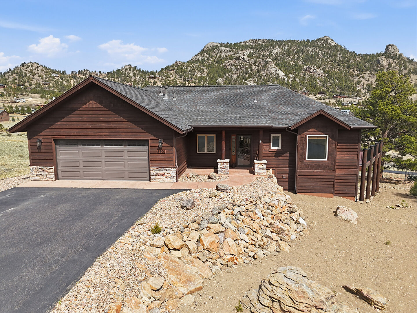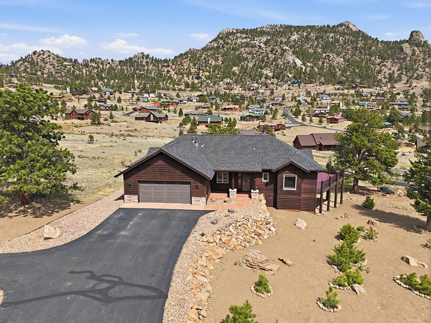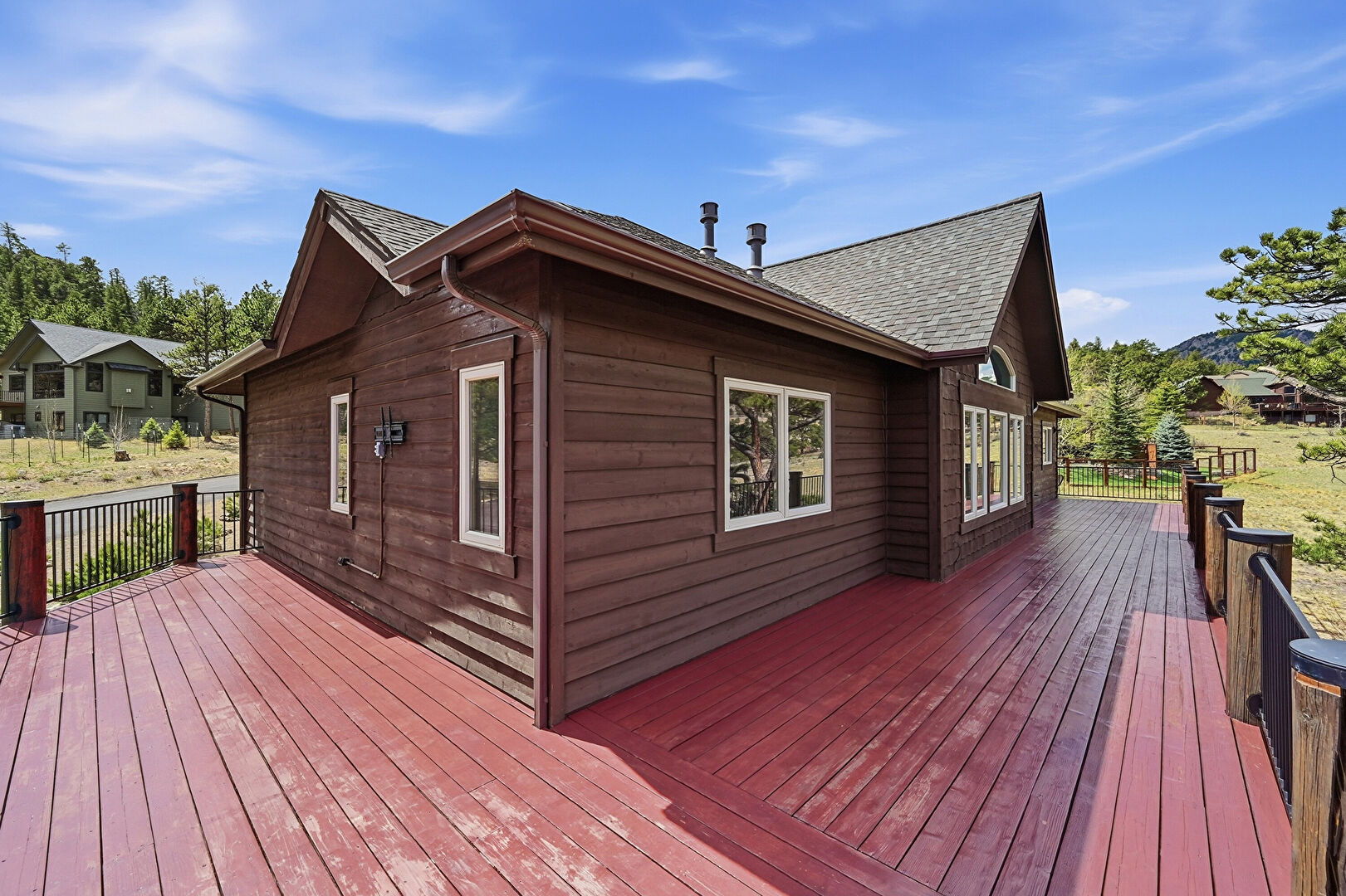 Downspout, Driveway, Gutters, Horizontal Siding, Mountain View, Porch, Shingle Roof, Stone Siding, Wood Siding, Deck, Driveway, Mountain View