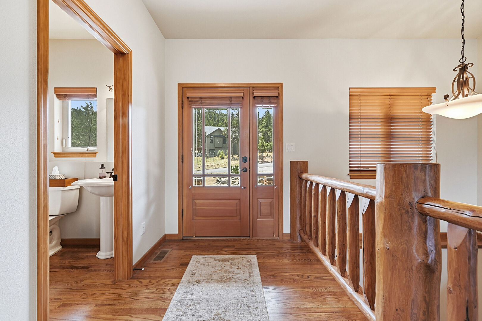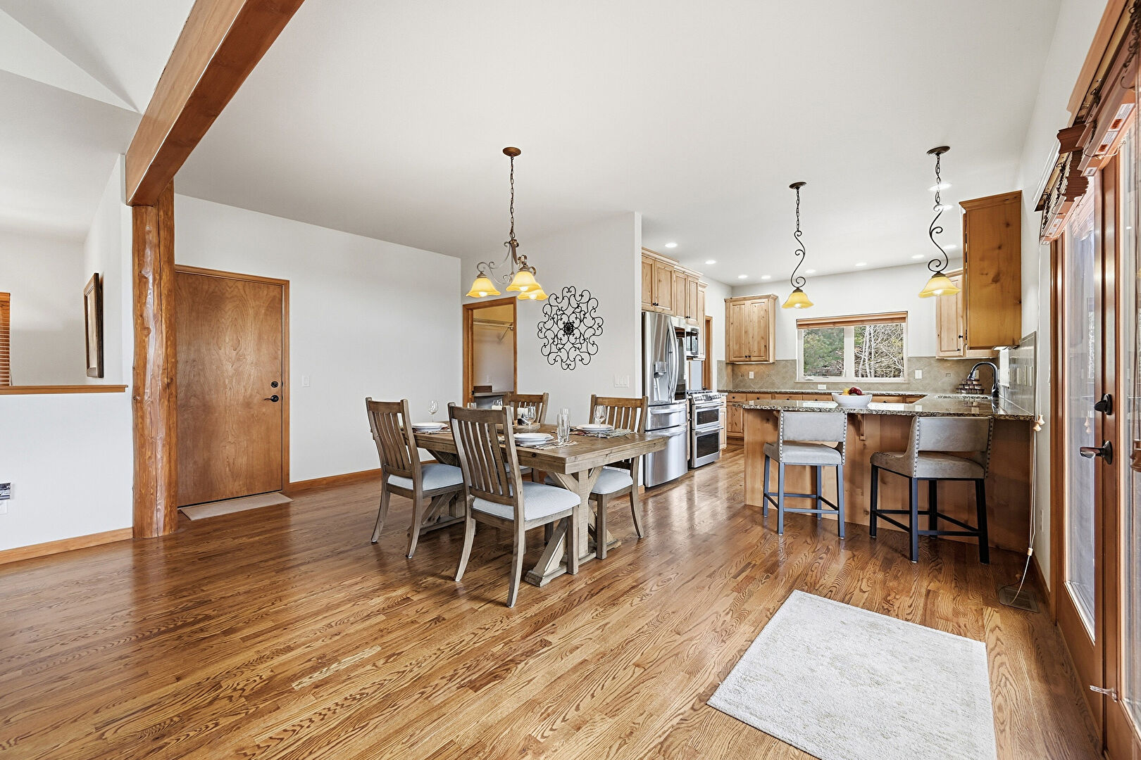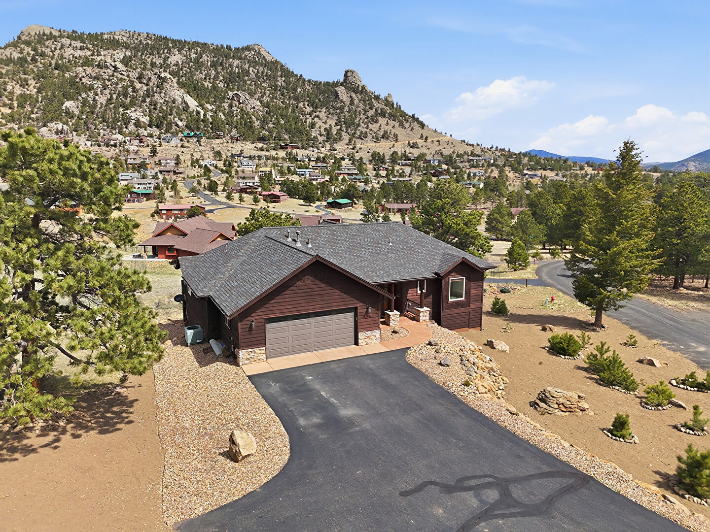 Downspout, Driveway, Gutters, Horizontal Siding, Mountain View, Porch, Shingle Roof, Stone Siding, Wood Siding, Deck, Driveway, Mountain View