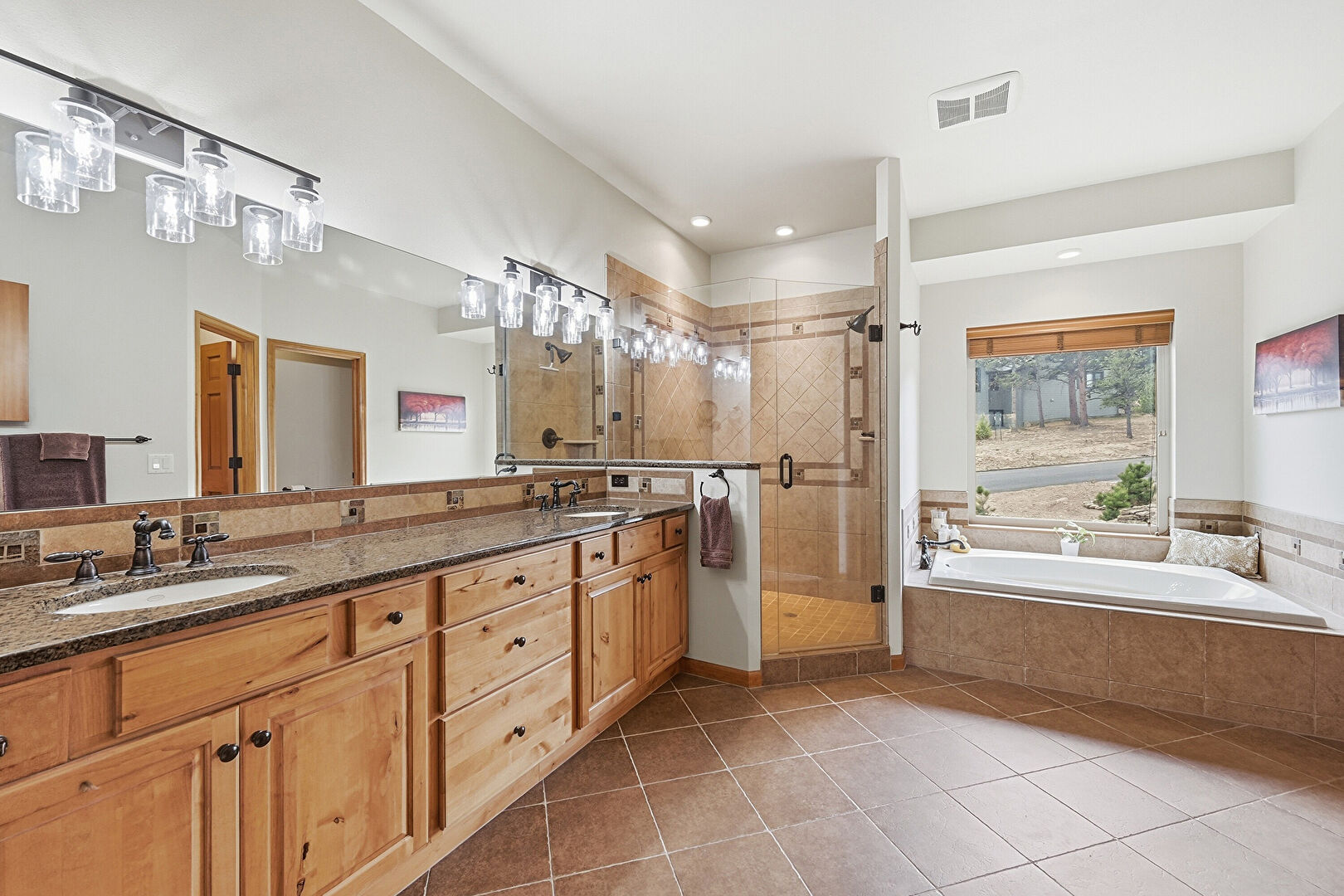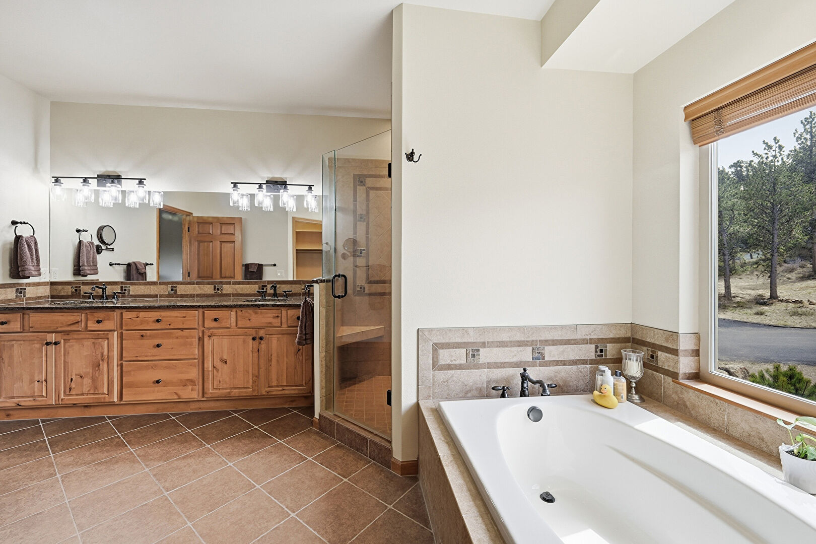 Double Vanity, Drywall, Full Bathroom, Natural Light, Recessed Lighting, Tile Floor, Vent, Double Vanity, Full Bathroom