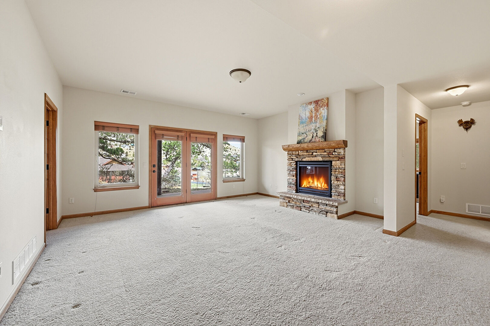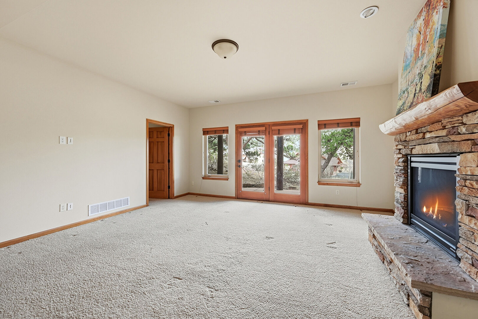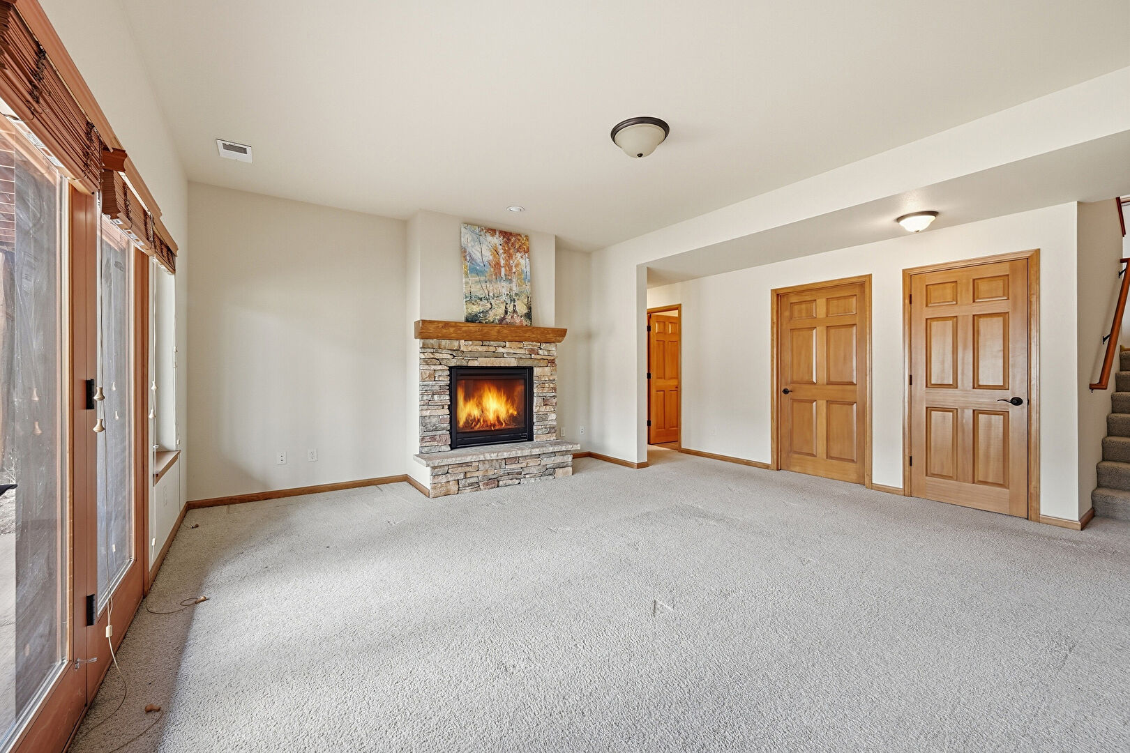 Baseboards Wall, Carpet, Drywall, Fireplace, Natural Light, Stairs, Vent, Carpet, Drywall, Fireplace
