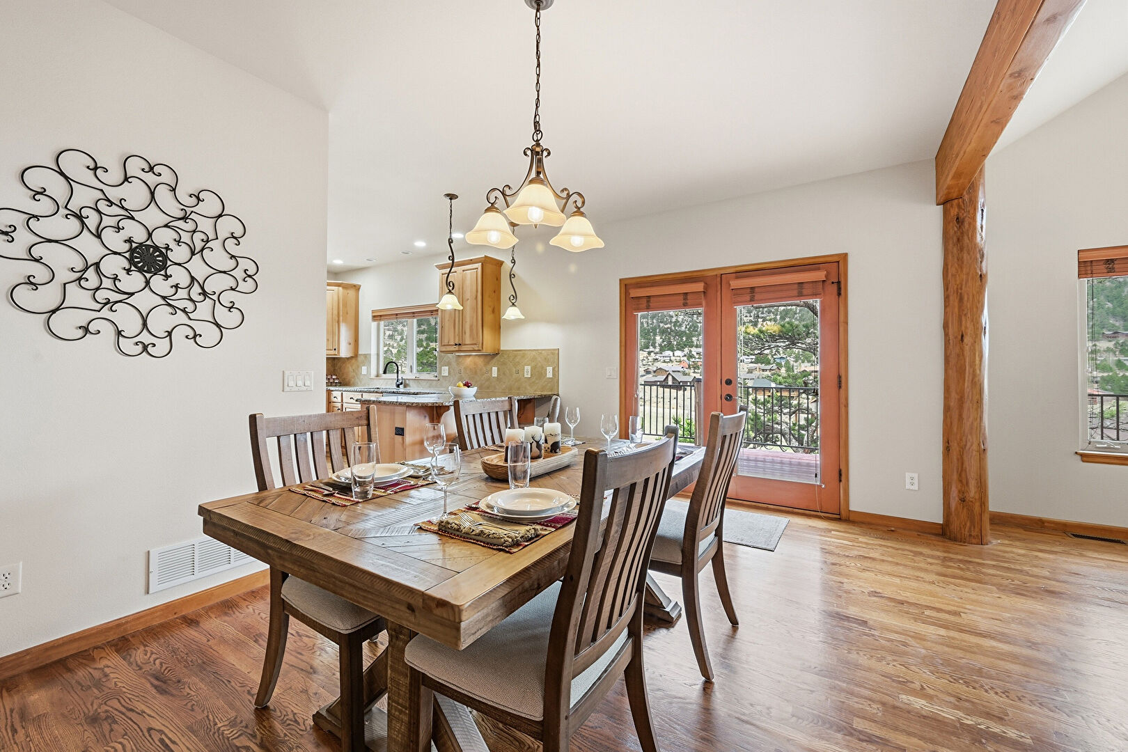 Baseboards Wall, Beamed Ceiling, Ceiling Fan, Drywall, Fireplace, French Doors, G Shaped Kitchen, High Ceiling, Natural Light, Notable Chandelier, Recessed Lighting, Vaulted Ceiling, Vent, Wood Finish Floor, Notable Chandelier, Vent, Wood Finish Floor