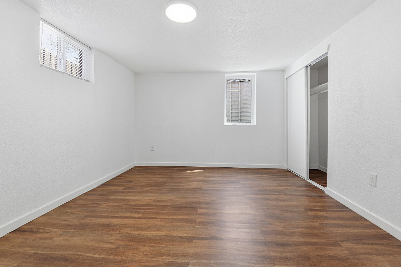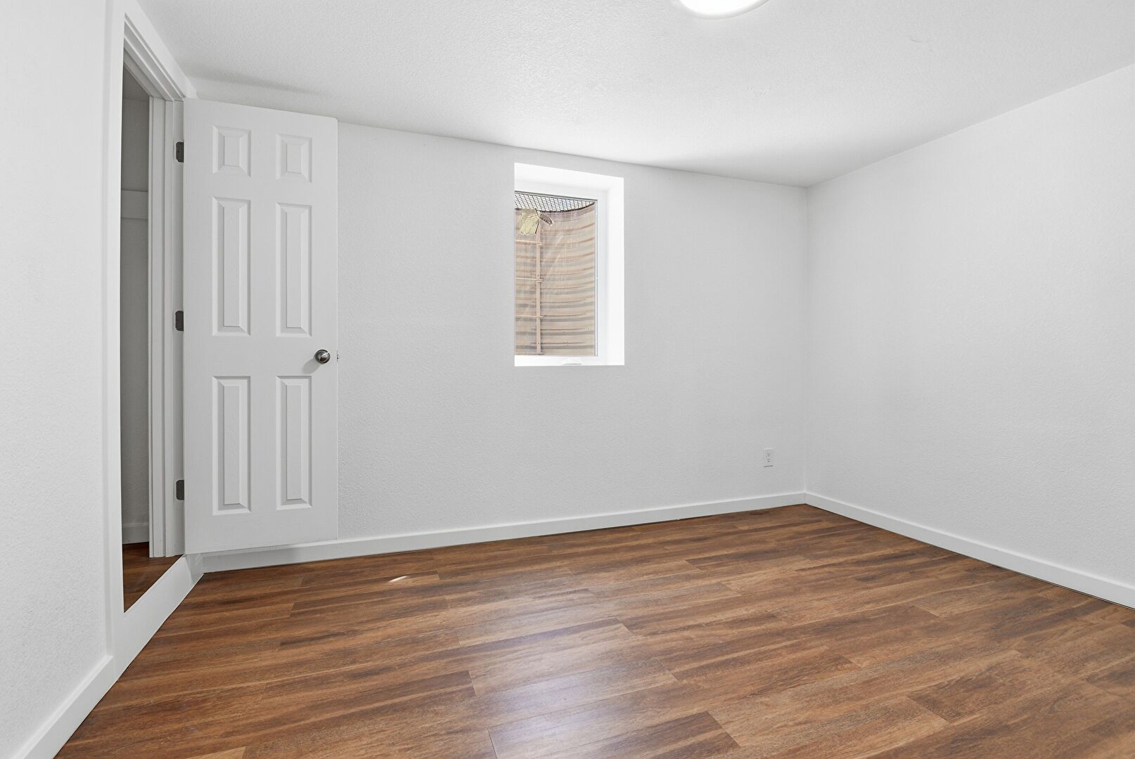 Baseboards Wall, Basement, Closet, Drywall, Textured Wall, Wood Finish Floor, Natural Light, Wood Finish Floor