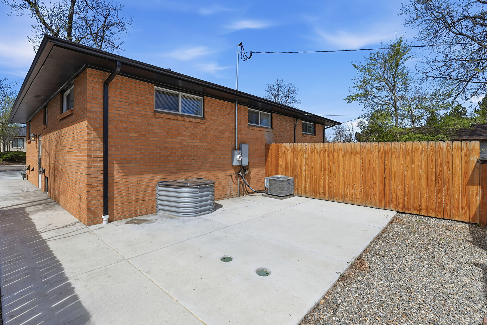 Brick Siding, Central Ac, Downspout, Fence, Patio, Gutters