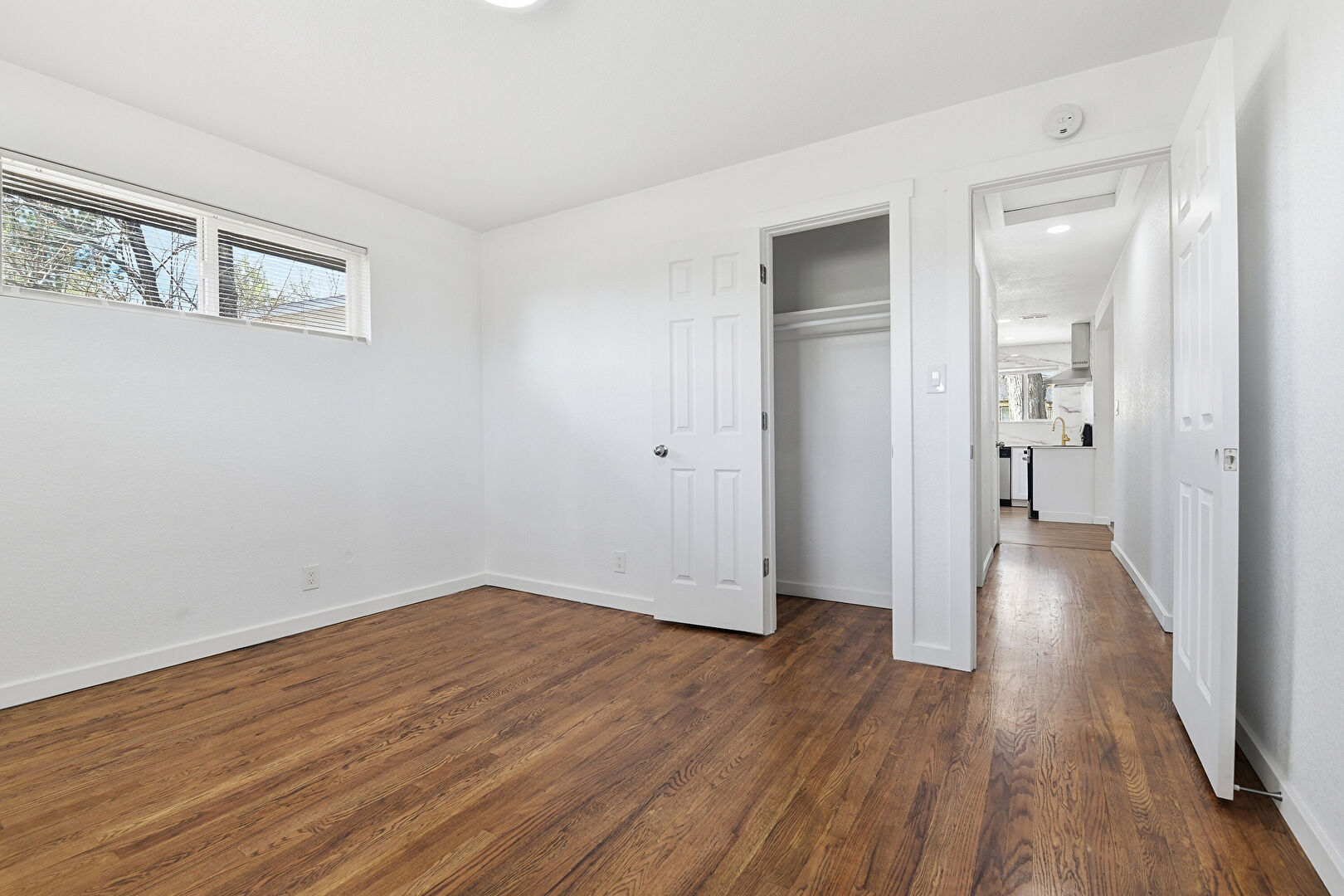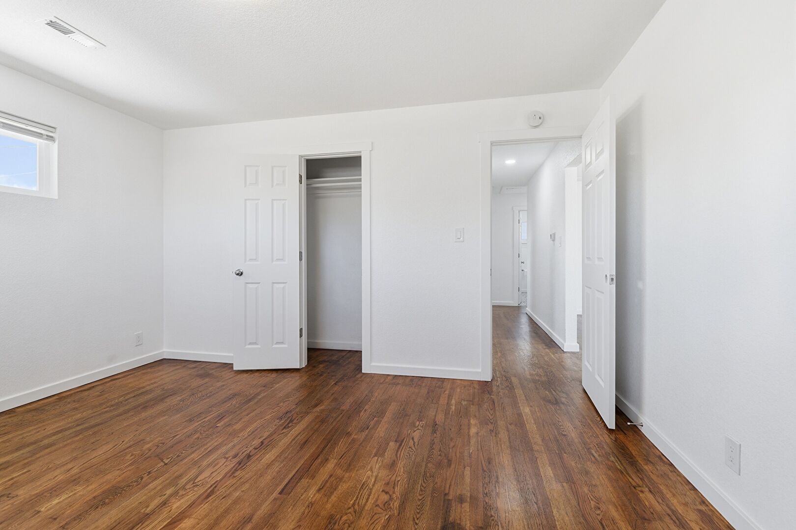 Baseboards Wall, Closet, Drywall, Natural Light, Smoke Carbon Monoxide Detector, Vent, Wood Finish Floor, Drywall, Natural Light