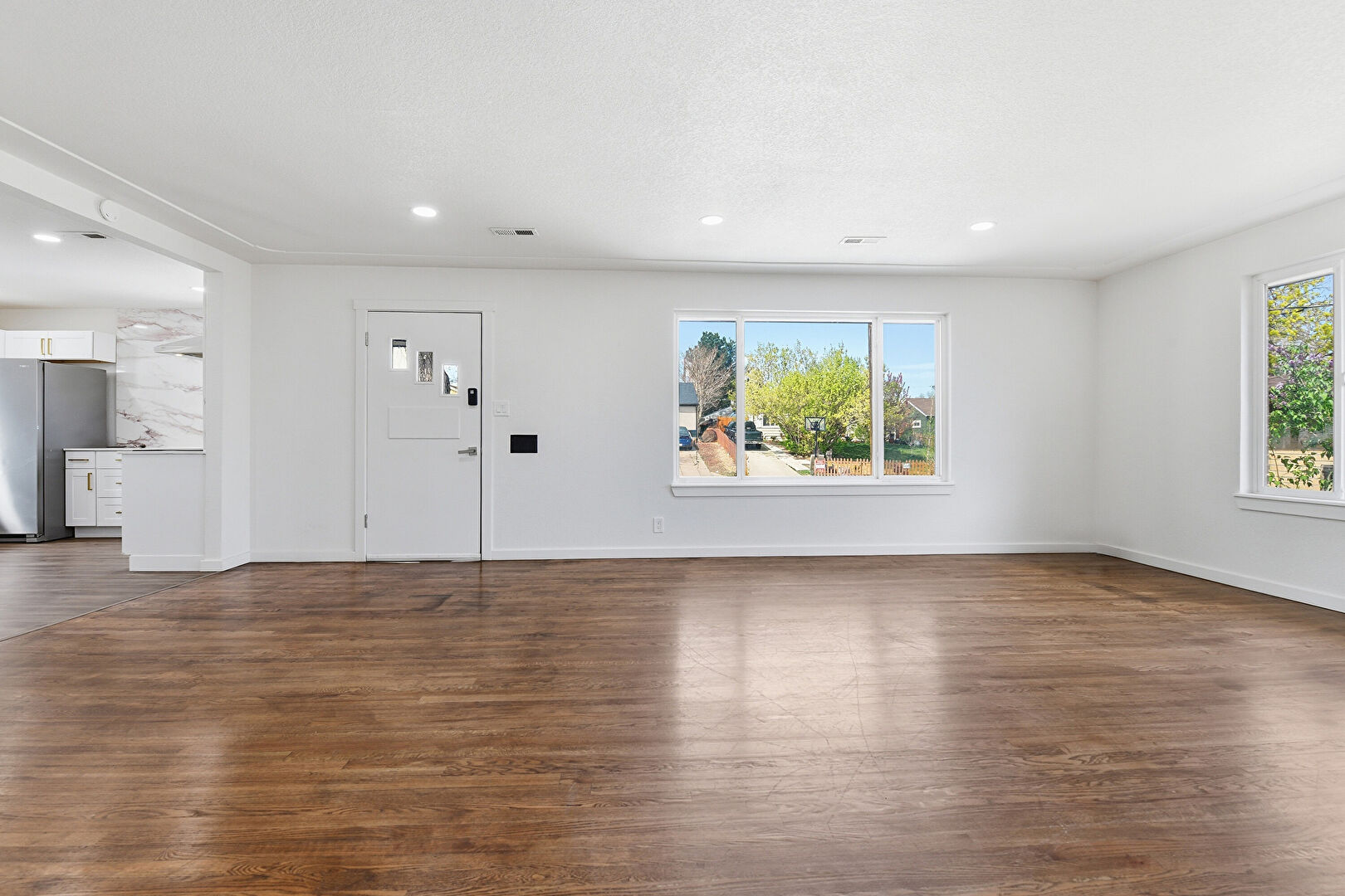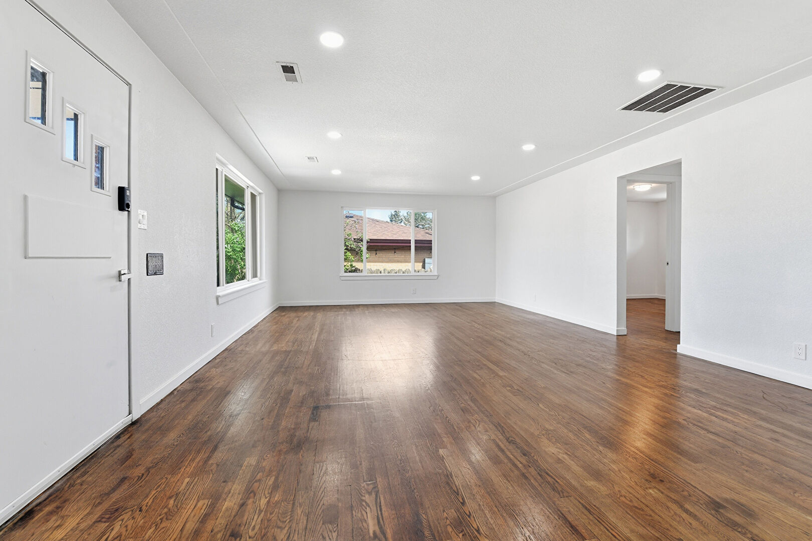 Baseboards Wall, Natural Light, Recessed Lighting, Textured Ceiling, Vent, Wood Finish Floor, Drywall