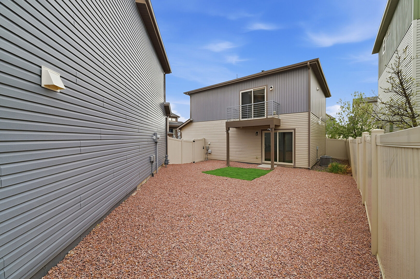 Balcony, Central Ac, Downspout, Electric Meter, Fence, Gas Meter, Gate, Gutters, Horizontal Siding, Lawn, Patio, Vertical Siding, Balcony, Vertical Siding